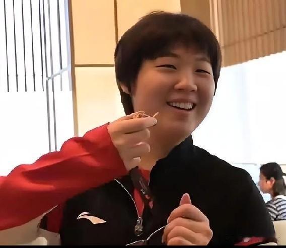 蒯曼能把王楚钦气死。这不,在新加坡餐厅里,面对各种海鲜,蒯曼如鱼得水,大快朵颐。 王楚钦可就惨了,过敏,吃不了这口。王楚钦左三圈右三圈,只能看着蒯曼吃,顺便当了蒯曼的背景板。 队友问蒯曼怎么样,大丫头满意的笑容掩盖不住:挺好的。