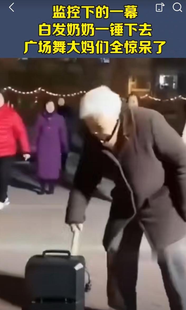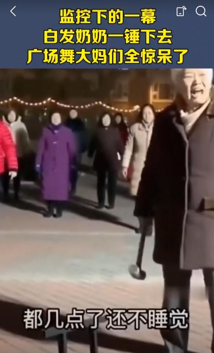 广场舞扰民,已成了一大公害。 尤其是是在居民区附近,一班退休大妈吃完晚饭就在楼下空地上跳,音响高声播放着乐曲,一直持续到深夜。 居民不堪其扰,可又屡次劝说不听。 一位白发苍苍的者奶奶实在无法忍受。她提着把小锤到广场舞中间,手起锤落,狠狠一锤把音响砸烂,说,都半夜了,你们还在跳! 跳舞大妈们顿时愣住了。