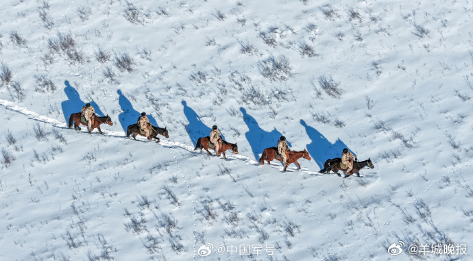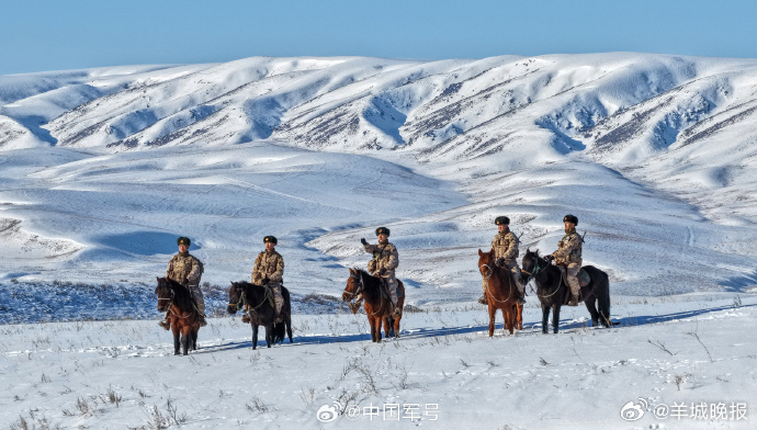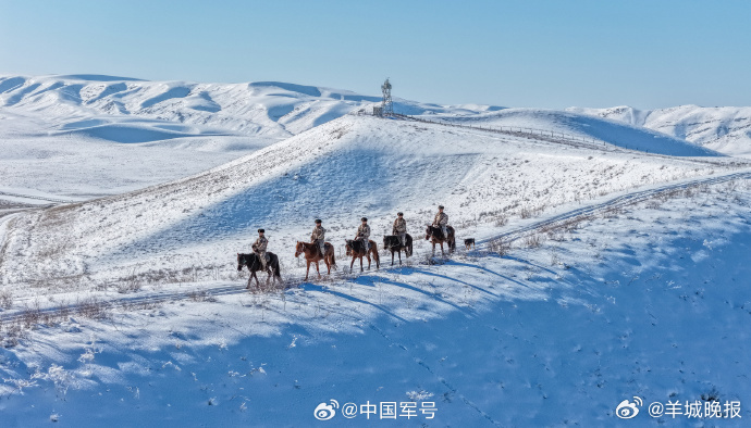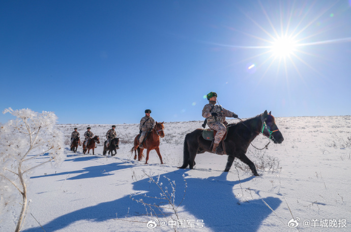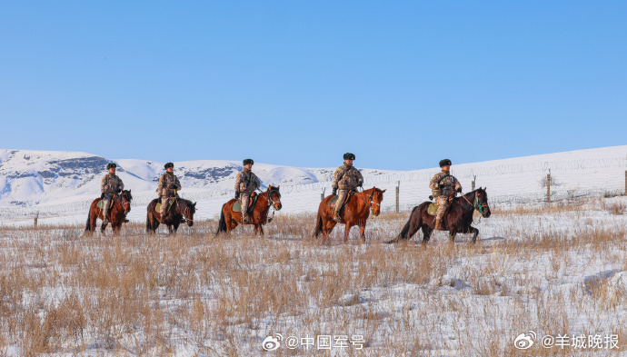【辛苦了!#边防官兵春节骑马巡逻现场#】#骑马踏雪巡逻的边防战士# 春节期间,新疆军区某边防连官兵冒严寒、踏积雪,乘军马对边境一线的重要点位和山口要道进行巡逻踏查,通过实际行动筑牢边境安全防线,为祖国和人民守护平安。(中国军号)(编辑:郑宗敏;审签:谢杨柳)
