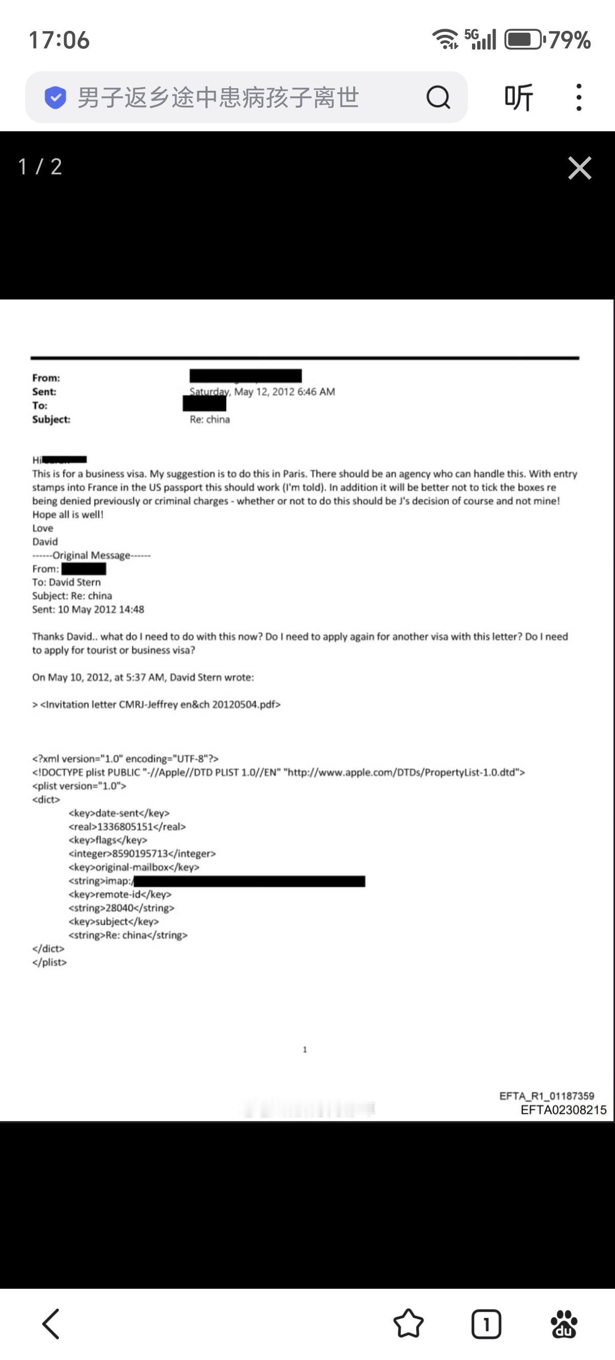美国联邦司法部解密文件显示,爱泼斯坦曾被中国拒签。 文件编号EFTA02308215:爱泼斯坦因入境中国遇到签证问题,2011年曾向英国安德鲁王子求助,王子让他的助理帮爱泼斯坦想办法,建议他到巴黎申请。但也没有成功 怎么不找德肖维茨帮忙?