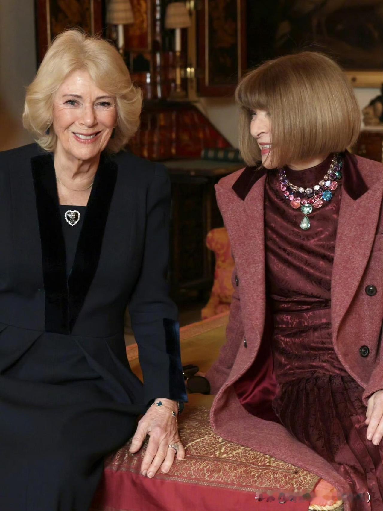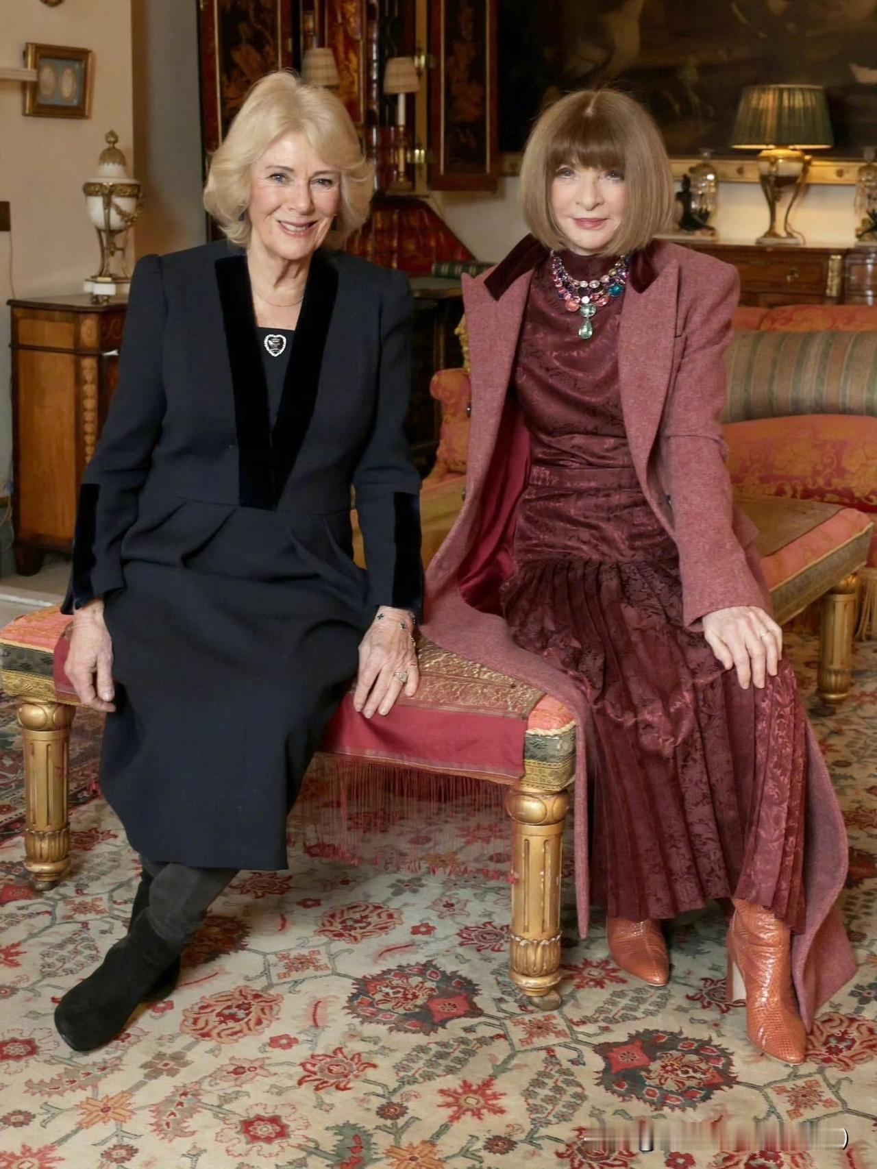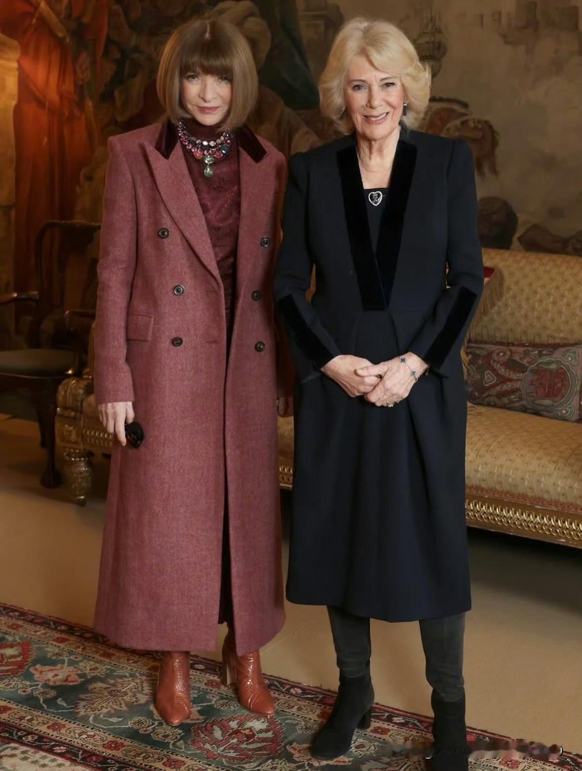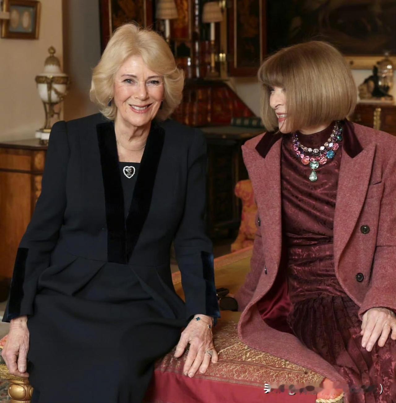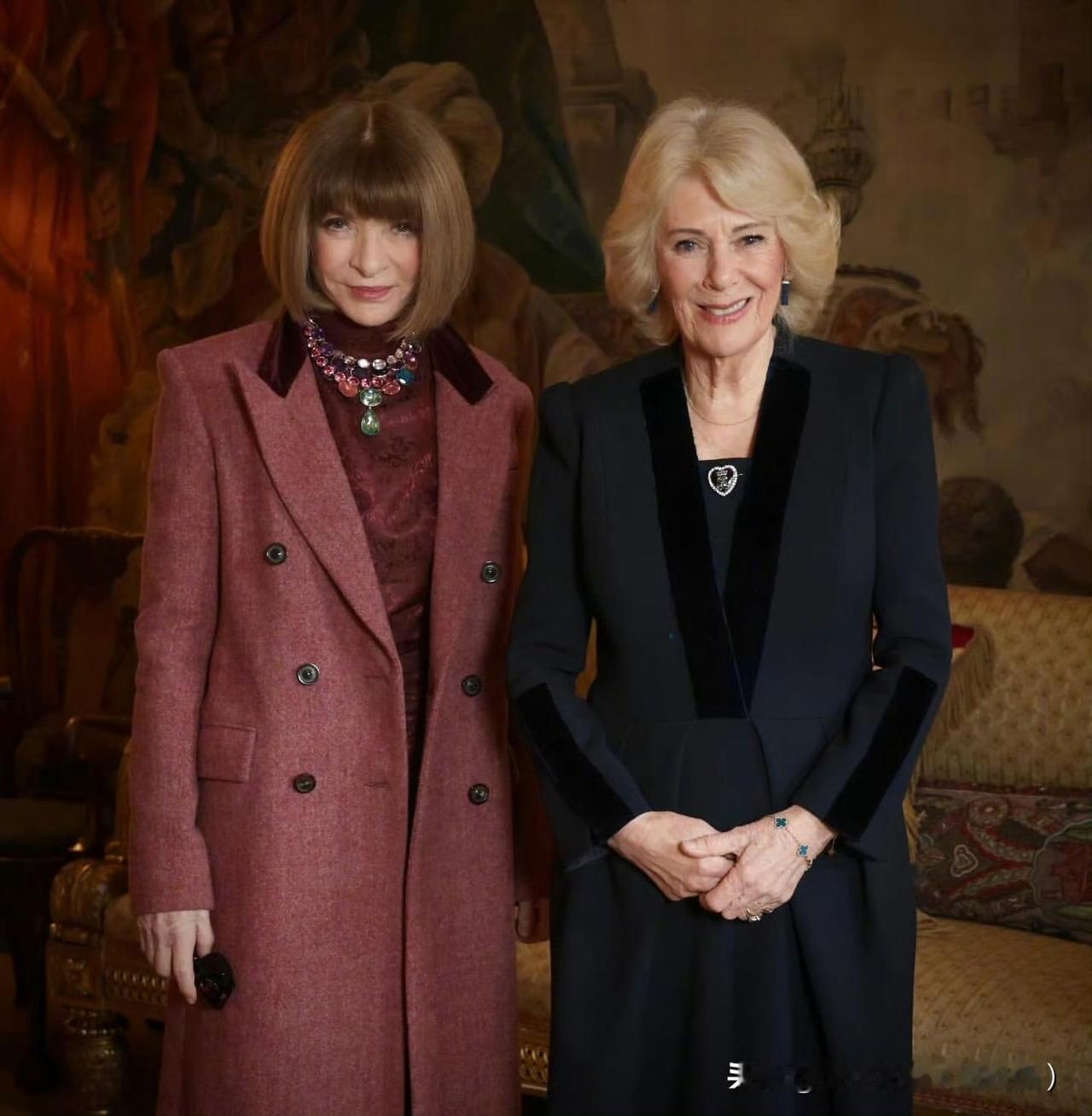 伦敦时装周开幕之际,卡米拉王后在克拉伦斯宫会见了安娜·温图尔!好久不见王后,感觉