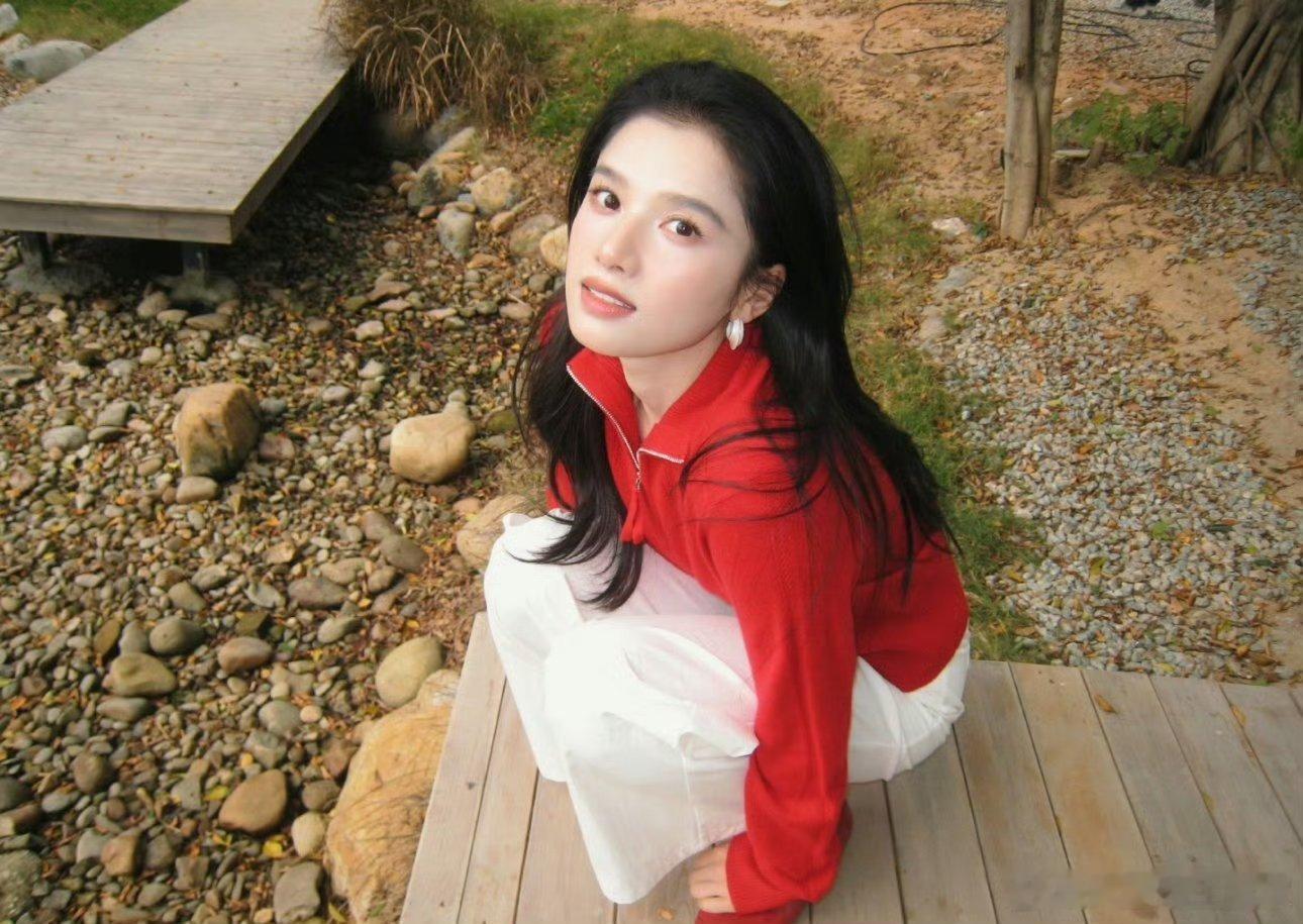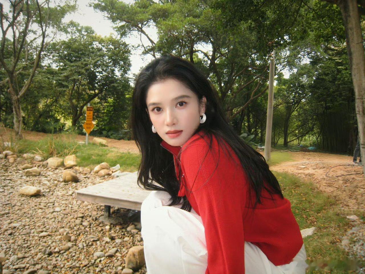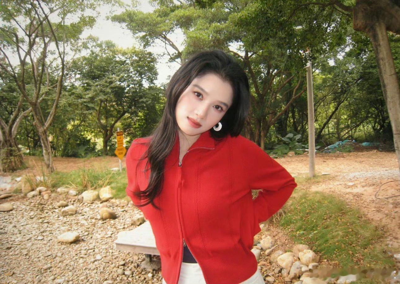 张婧仪好适合红色阳光毛衣和少女,这组照片完全看了就很开心