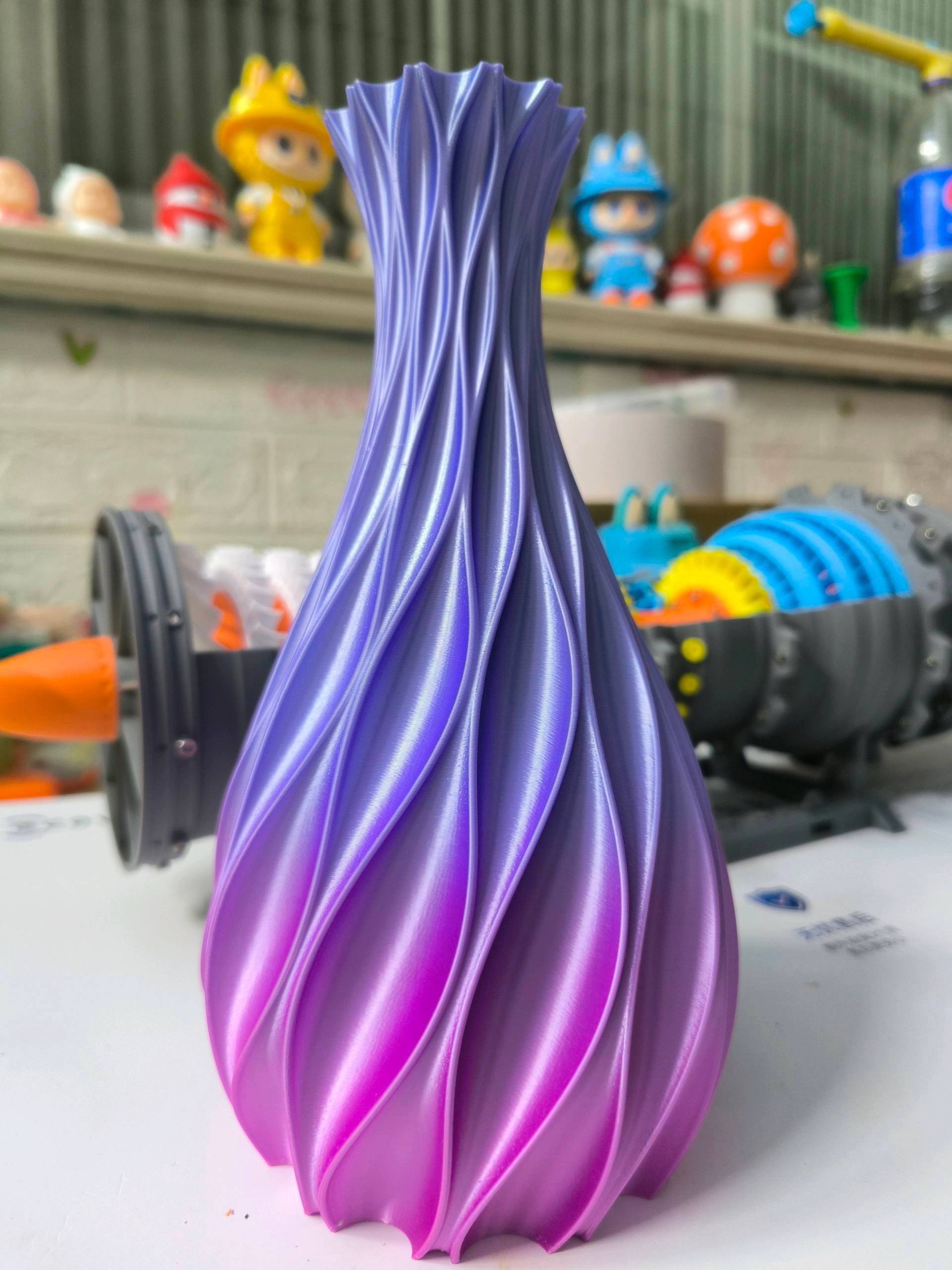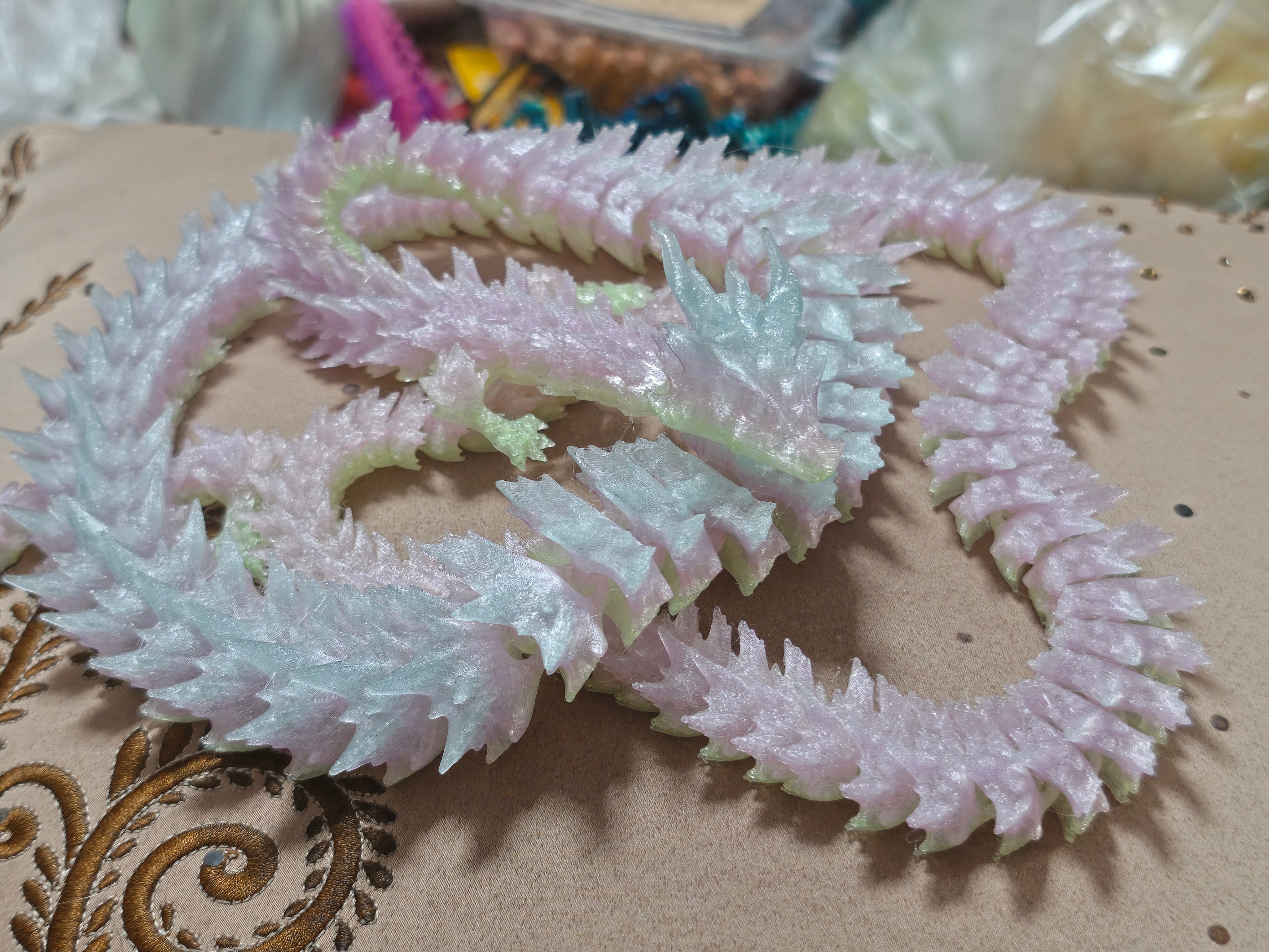 观众定做的3d打印透明七彩水晶闪点龙。颜色还是很可爱的,我又打了一个花瓶。丝绸质感很漂亮。而且成本极低,只有薄薄一层,小号1块钱,2块钱,最大号也只需要8块多。