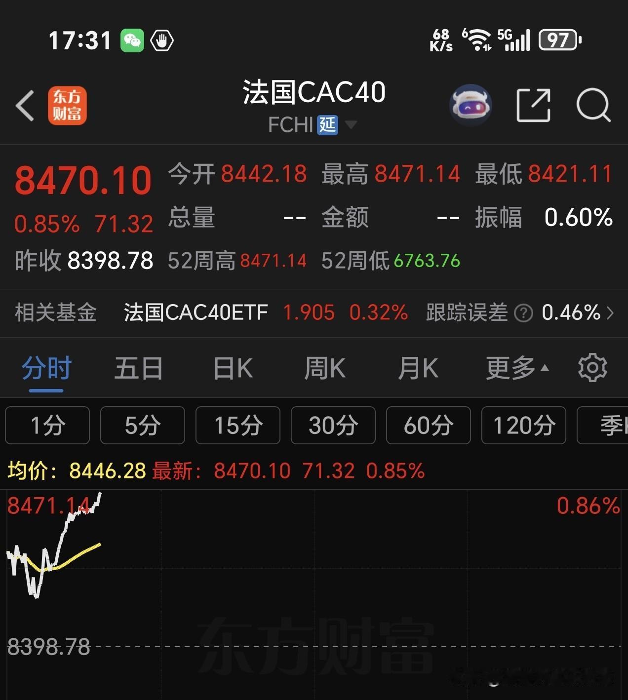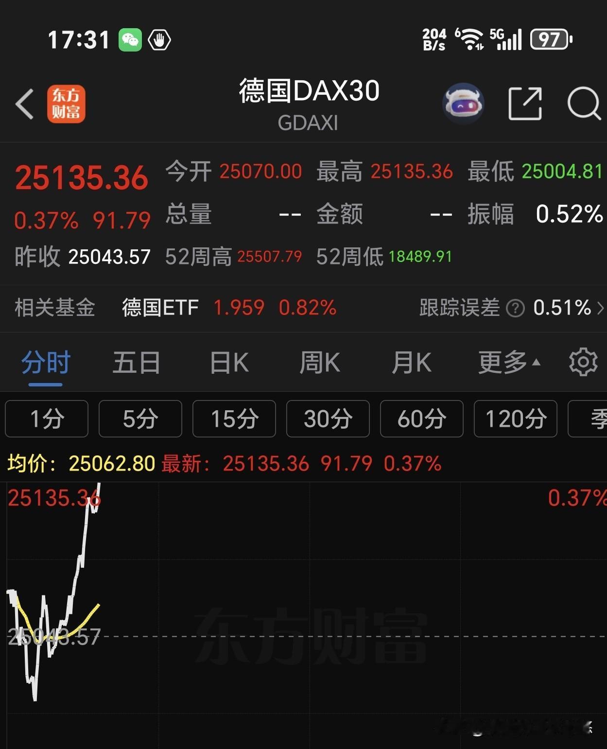 国际黄金及欧洲三大股指(下图所示),下午4点半上涨📈中,这几天地缘政治飘忽不定,油气及贵金属走强,港股今天盘面也有表现。
