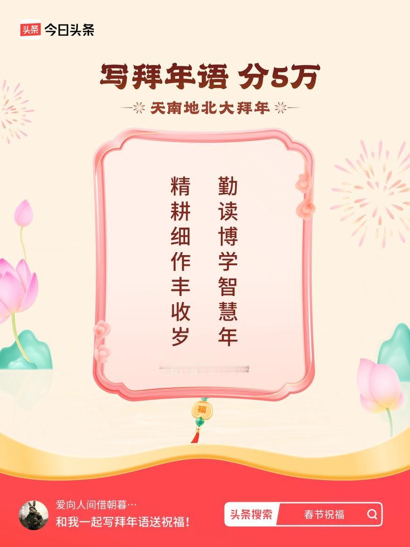 写拜年语送祝福新春拜年送祝福!我的祝福是:“精耕细作丰收岁,勤读博学智慧年”!快来一起写祝福吧戳这里,一起领红包>