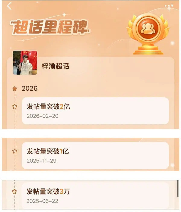 恭喜梓渝超话发帖量突破两个亿,距离上次超话发帖量破亿仅过81天,活粉真多啊