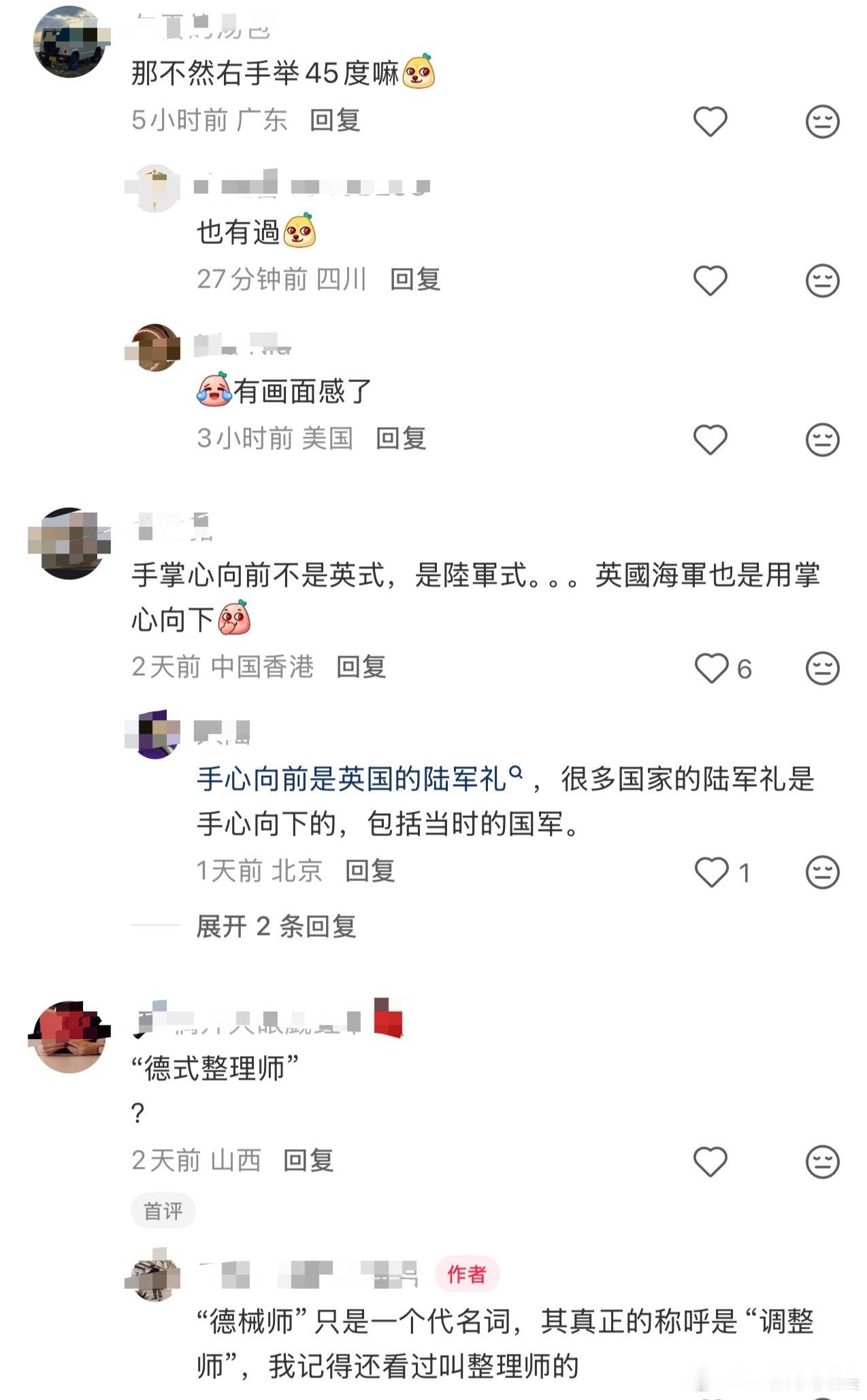 得闲谨制一上线就被拉片分析了!军事博主和网友探讨得闲谨制里肖衍的敬礼手势细节分析角色身份,肖衍原来是的是德式调整师第88师的某团直属小炮连。至于为什么行英式陆军礼评论区还在探讨中…
