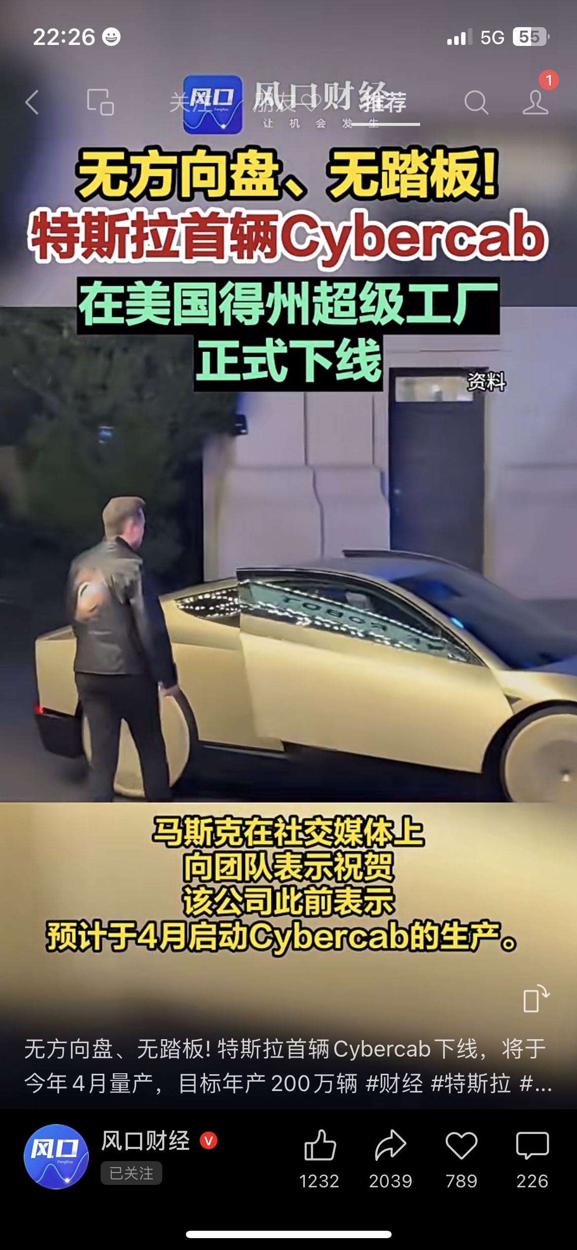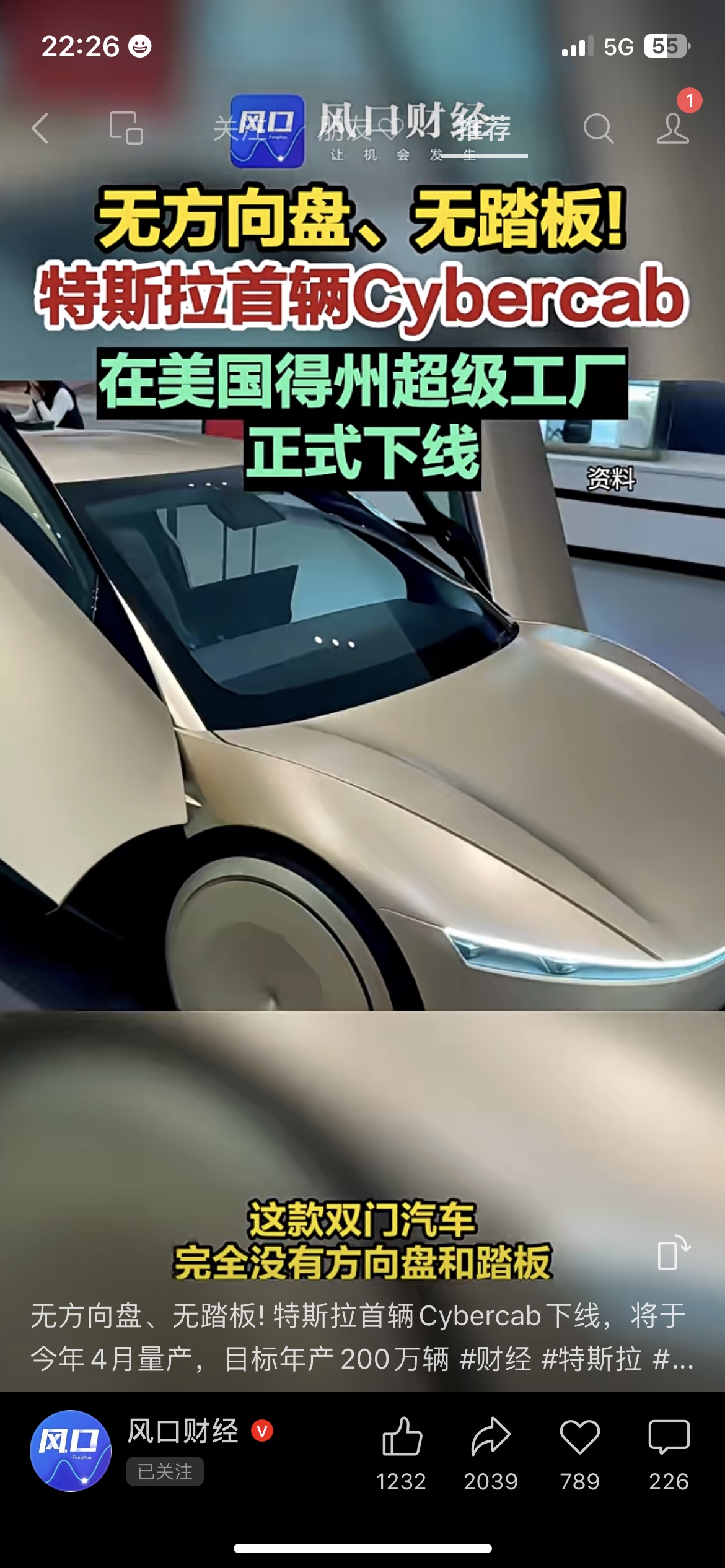 首辆Cybercab正式下线:无方向盘、无油门、无刹车,完全自动驾驶。 目标年产200万辆,未来出门不用自己开车。 说实话,科技是真牛,但敢坐的人真需要勇气。 以后出行全靠AI,你能接受吗? 你敢坐一辆没有方向盘的车吗?