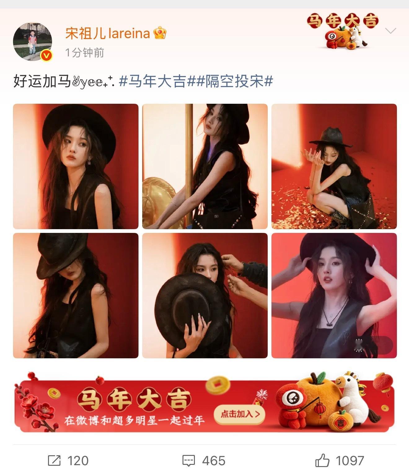 宋祖儿新春掌管牛仔帽的神宋祖儿新春分享美照 并配文到好运加马隔空投宋!好运马年大吉,宋祖儿宋祖儿春节刷到宝了宋祖儿新春牛仔穿搭