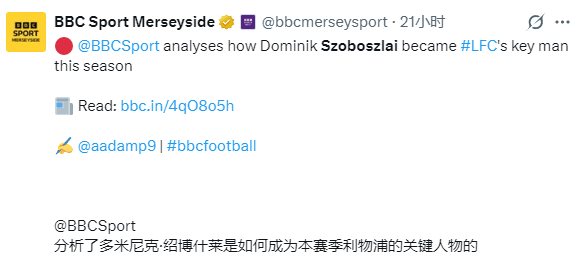 在利物浦内部,自从更偏进攻的10号位球员维尔茨到来后,从未有人觉得索博会沦为边缘人。斯洛特一直非常看重他的能力,上赛季曾一字一顿、着重强调他“不可思议”。很难想象斯洛特会主动把索博排除在首发之外。