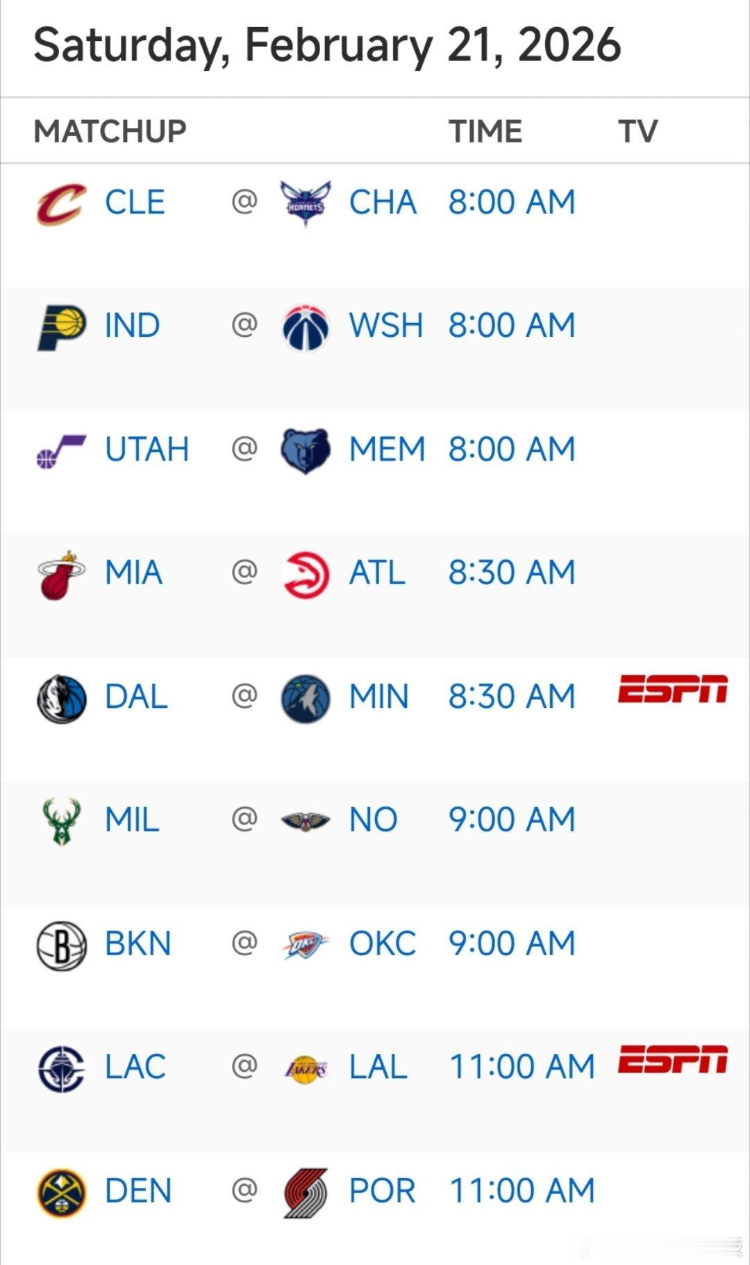 8:30 独行侠vs森林狼11:00 快船vs湖人,掘金vs开拓者