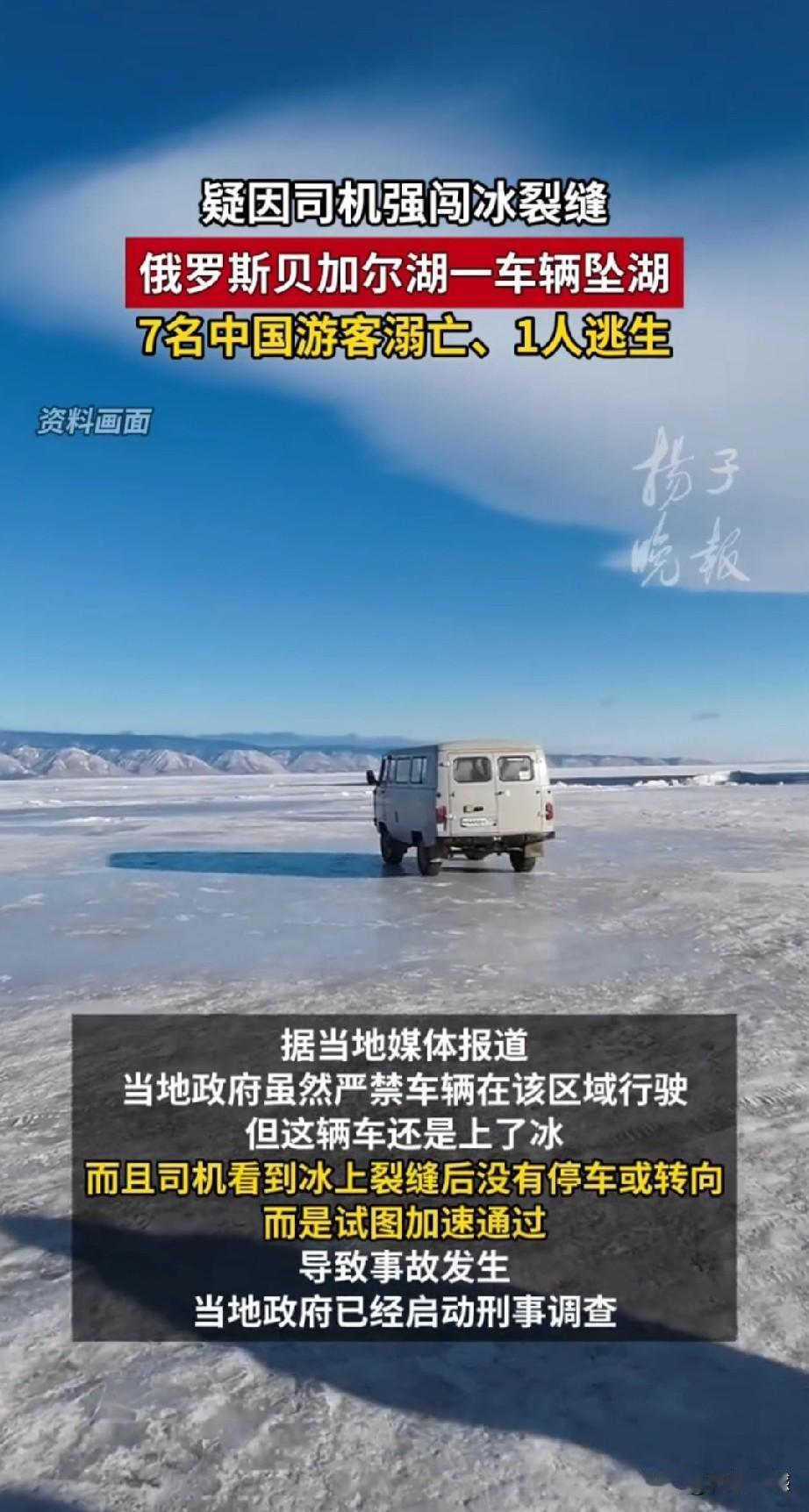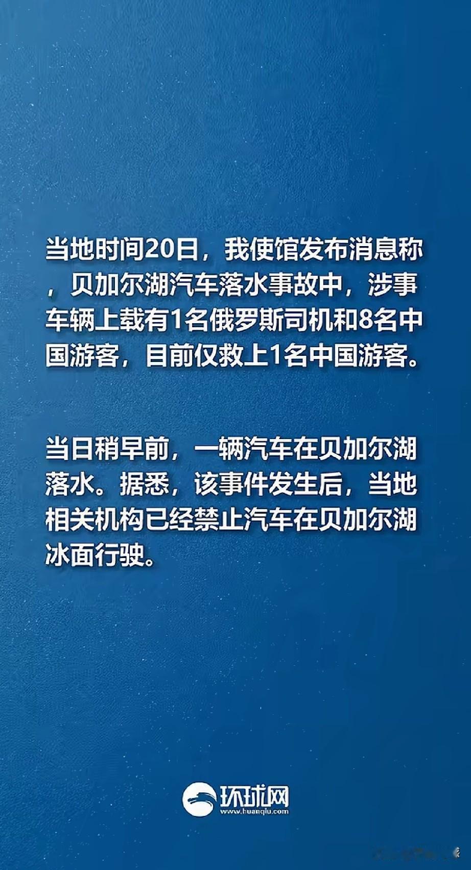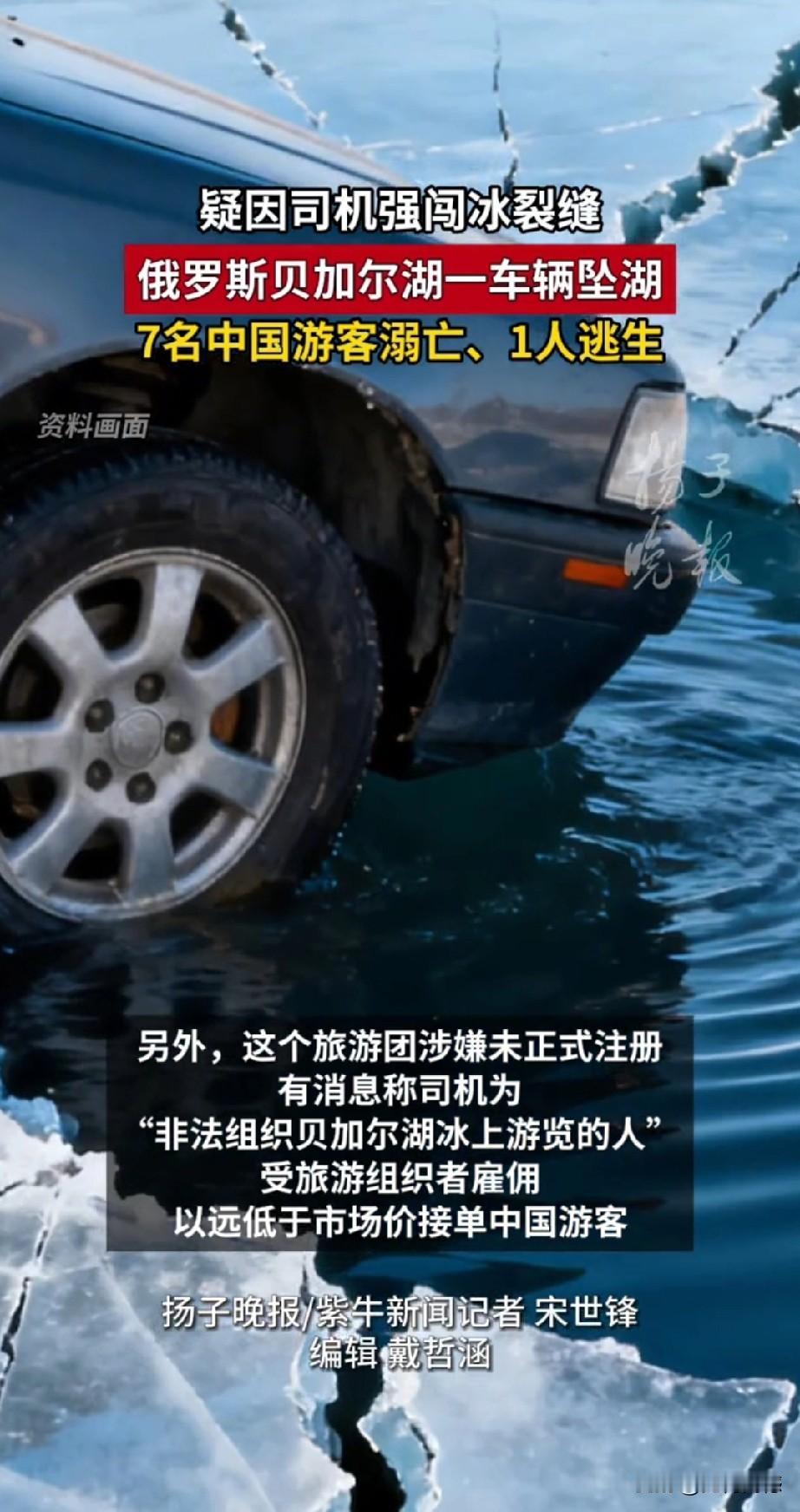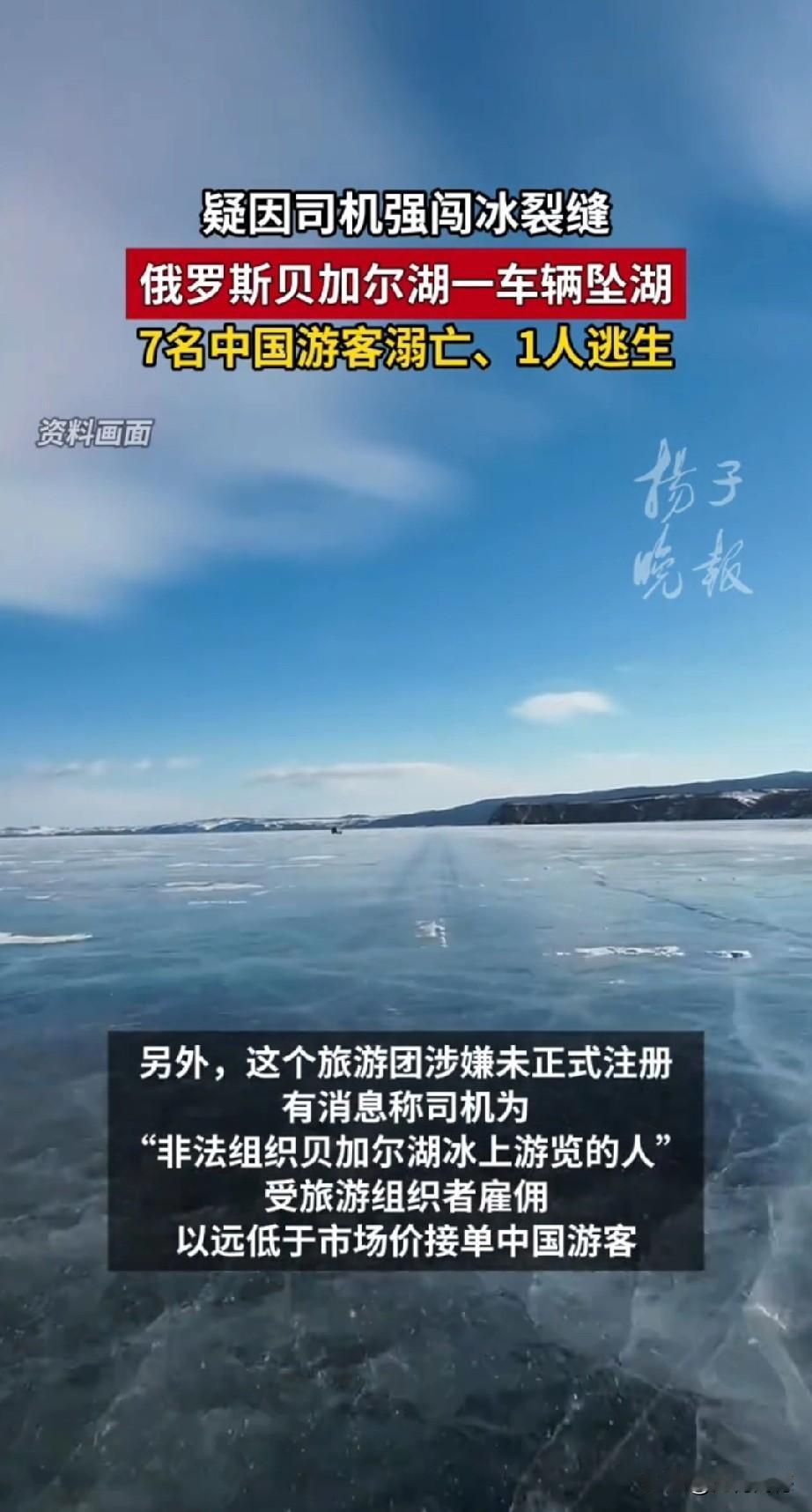 八名中国游客正月初四在贝加尔湖落水,仅一人被救上来,剩下七人全部遇难,按道理说,贝加尔湖的冰面应该是很厚的,那里的温度也比较低,拉人车辆是不可能把冰面压碎的,到底是怎么回事呢,详细消息还是没有看到,真为这七个人感到惋惜,大过年的,把命丢在了异国他乡,真是太不幸了!