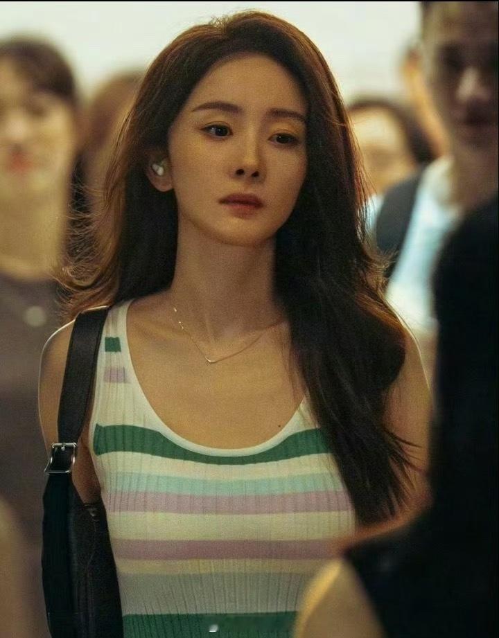 杨幂带火吊带条纹长裙没办法,时尚和美貌是天生的,幂姐开年就出神图。