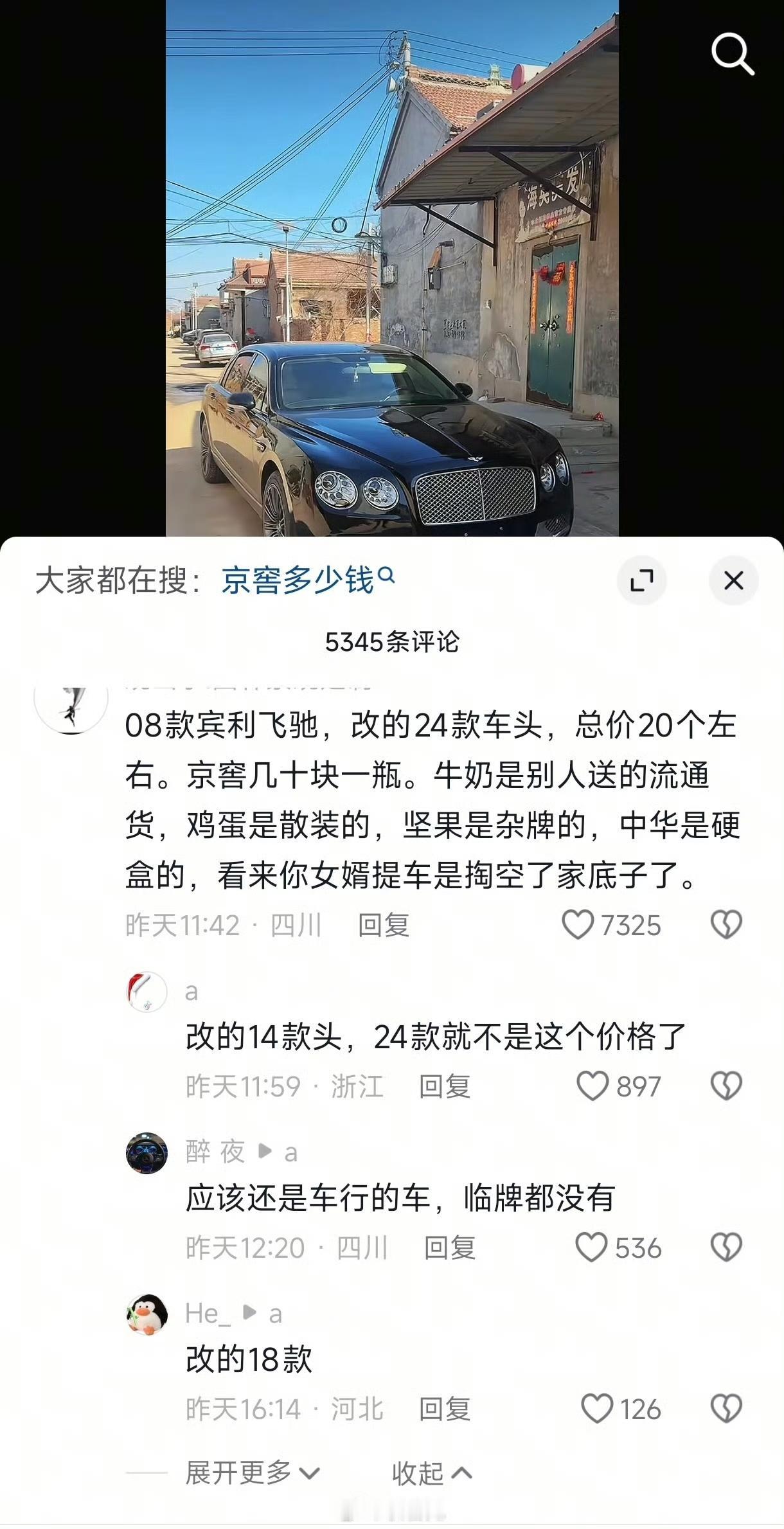 小伙开宾利上门提亲发视频炫耀,没想到被眼尖网友戳穿翻车了。男子开的宾利不假,但是老黄瓜刷绿漆,是一款老车换了新门脸,二手车就值十几万。抱一堆散装鸡蛋,假华子,便宜的八宝粥、牛奶送老丈人,就拿这些糊弄事,明显是在充大款,骗信任,礼品加起来不超过500块。