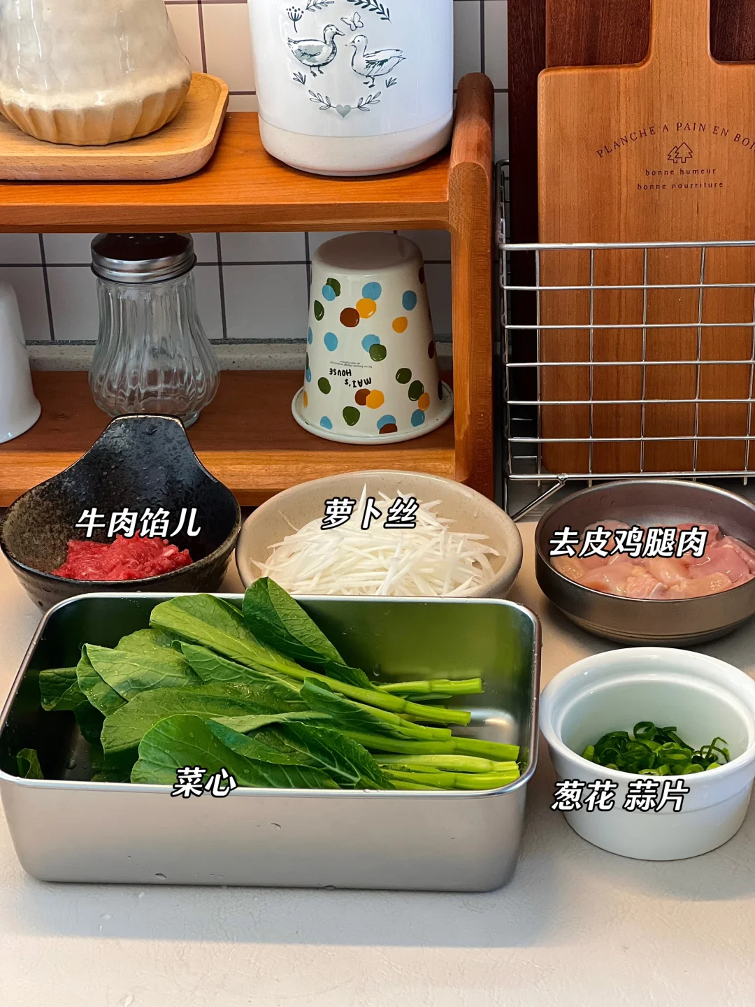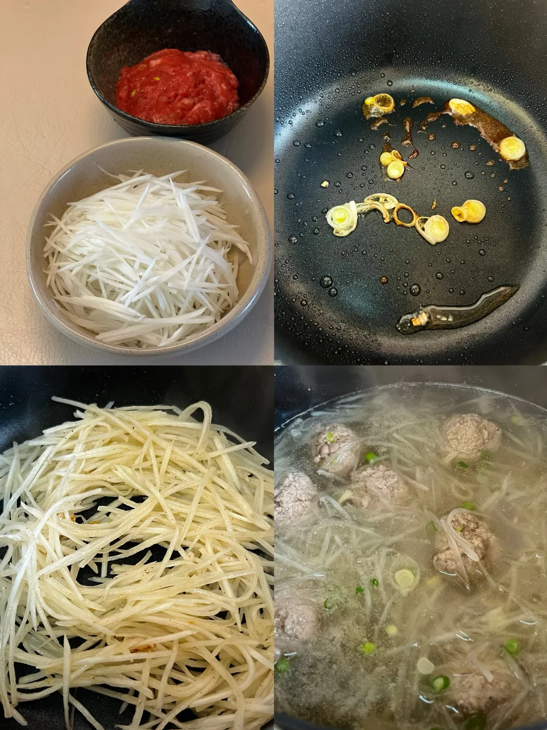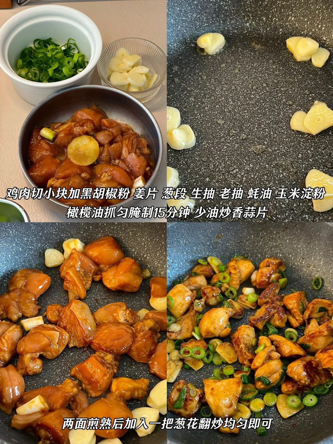今日午餐:葱香鸡腿+萝卜丝丸子汤+清炒菜心🥬+杂粮饭 食材热量:约364千卡 葱香鸡腿做法✅ ❶鸡肉切小块加黑胡椒粉 姜片 葱段 生抽 老抽 蚝油 玉米淀粉 橄榄油抓匀腌制15分钟 ❷少油炒香蒜片 鸡腿肉平铺在锅中 两面煎熟后加入一把葱花翻炒均匀即可 萝卜丝丸子汤做法✅ ❶牛肉加生抽 蚝油 葱花 姜汁 蛋清拌匀 ❷少油炒香葱花 加少许五香粉炒出香味加入萝卜丝炒软 加入适量清水煮开 ❸水开后下牛肉丸再煮5.6分钟 撇去浮沫 加少许盐 白胡椒粉 葱花即可出锅 又是低卡好吃的一餐哦~~~