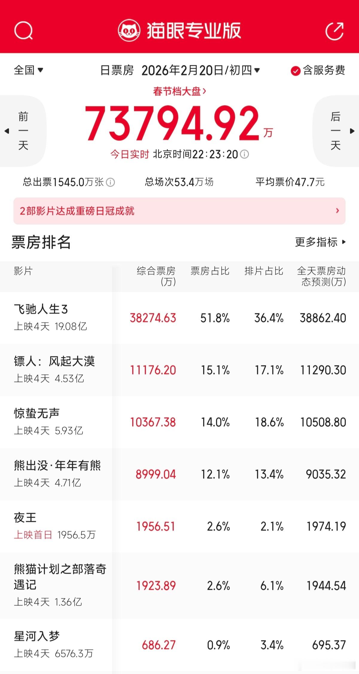 春节档票房前三排名1⃣️飞驰人生3 豆瓣7.5分2⃣️镖人.风起大漠 豆瓣7.5分3⃣️惊蛰无声 豆瓣6.3分明后天打算看电影去,大家更推荐看哪个?