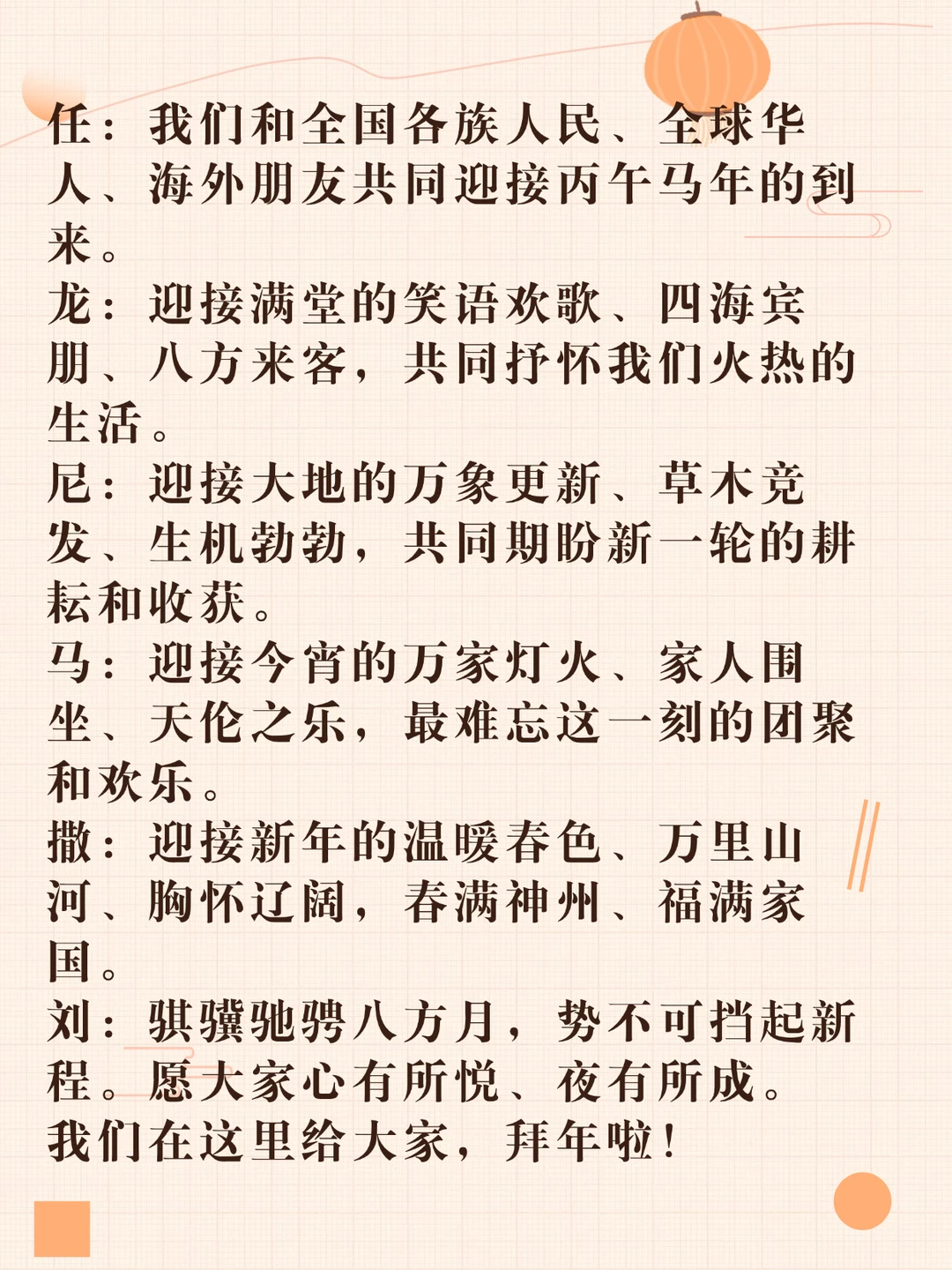 任:我们和全国各族人民、全球华人、海外朋友共同迎接丙午马年的到来。