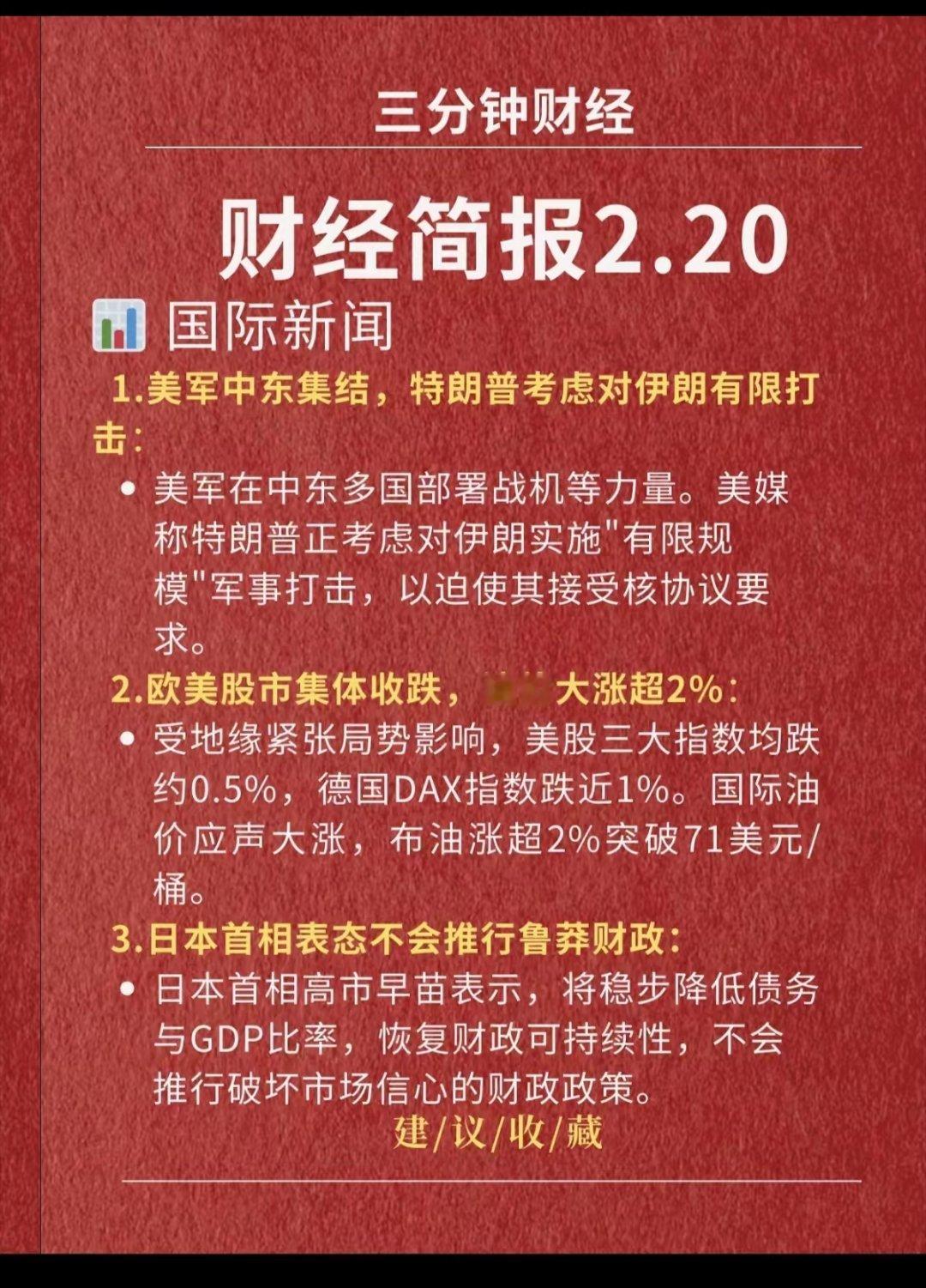 2.20周五 晚间 财经热点新闻汇总!1.中东局势紧张,油价上涨2.港股机器人逆势大涨!3.英伟达最新AI芯片即将发布4.中科曙光接入智谱5.6G技术取得新突破