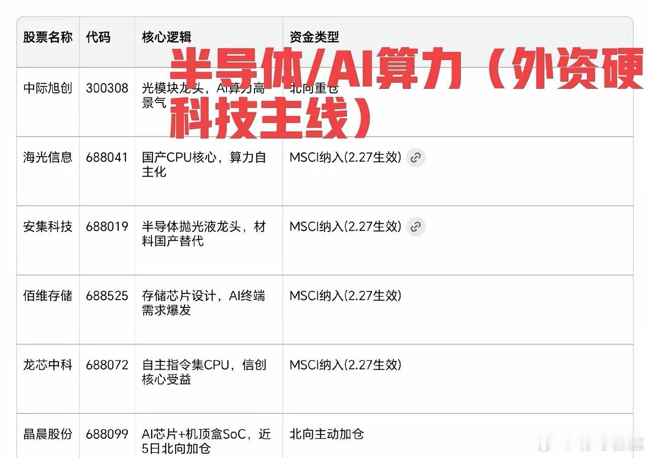 1. MSCI纳入标的:2026年2月27日收盘后生效,被动资金将集中买入,安集科技、佰维存储、中无人机等标的易获流动性溢价。
