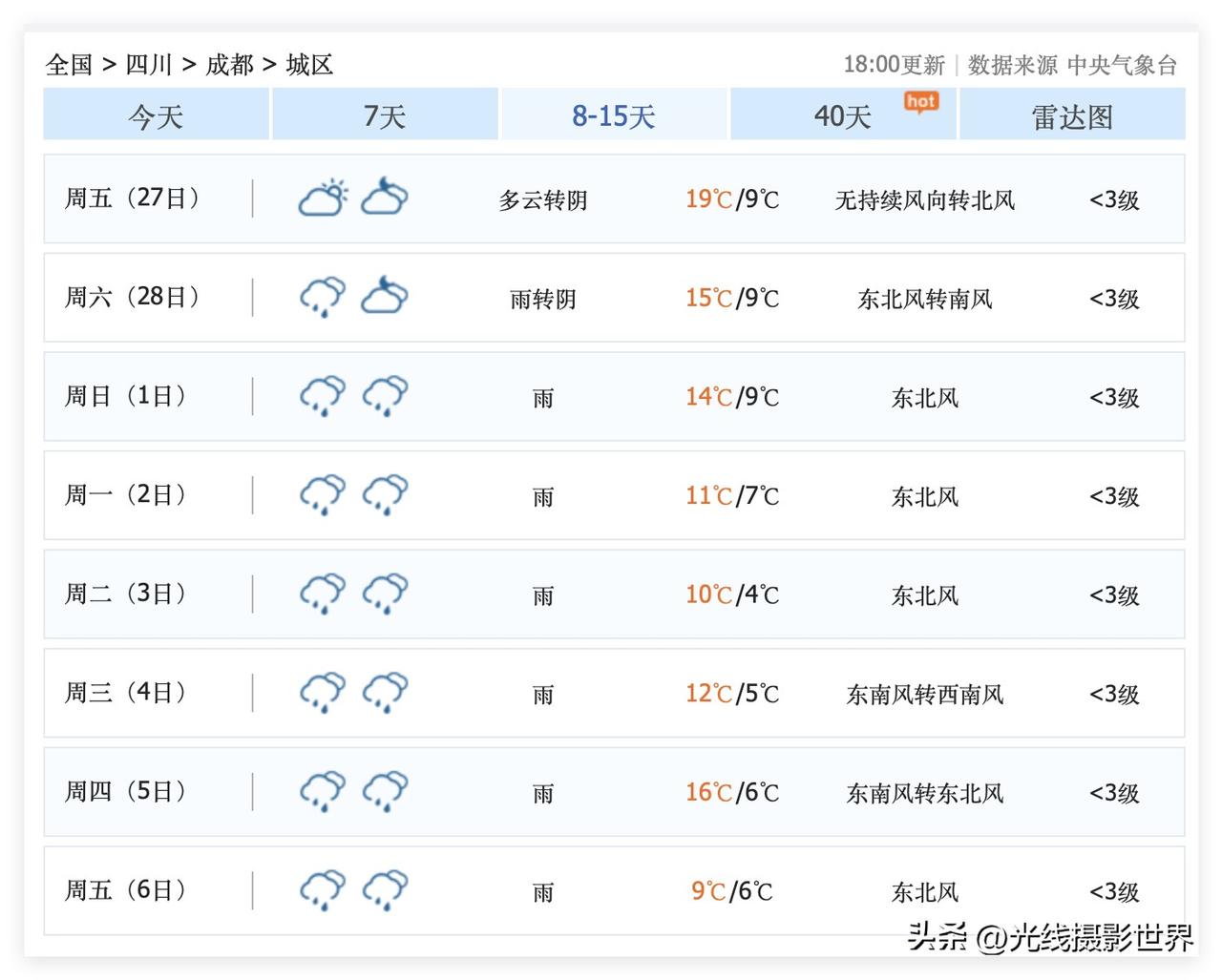 成都人注意啦!2月21日,大年初五,晚上成都可能会下雨!2月22日,大年初六,成都可能依旧下雨……而且,四川省的小伙伴们,如果要自驾车去长三角的上海杭州南京,自驾车去广东珠三角的广州深圳……那么,也要注意了! 2月22日到23日,重庆--长沙,重庆--武汉,重庆+湖北+贵州+湖南……可能会有大雨甚至暴雨……铁路,高速公路网,可能会受到影响! 从成都出发去上海或者广州的小伙伴们,要密切关注重庆+湖北+湖南+贵州的一些区县的天气预报! 好吧,最后,超级计算机认为,3月1日到6日,成都市几乎每天都要下雨,而且有超强冷空气南下速冻……哎呀!成都的3月1日到6日,可能会是凄风冷雨为主……冻死个人啊! 3月3日,元宵节,成都下雨,气温4-10度……呜呜呜!