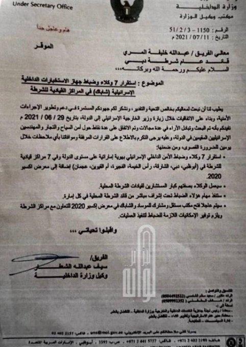 一份来自阿联酋内政部的重磅文件揭露了一项和以色列勾连的机密协议。 该协议将把