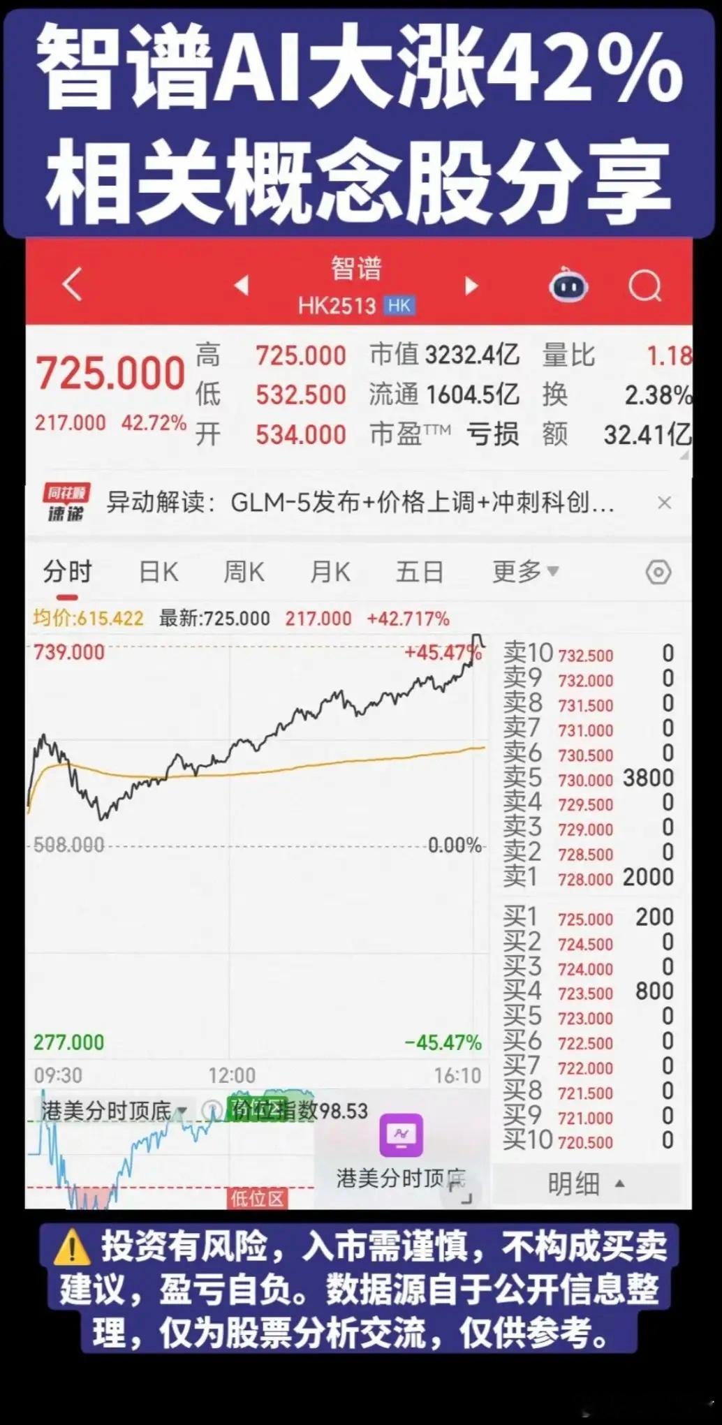 港股智谱AI大涨42%,相关概念股分享!1.清华智谱,参股2.算力3.大模型,