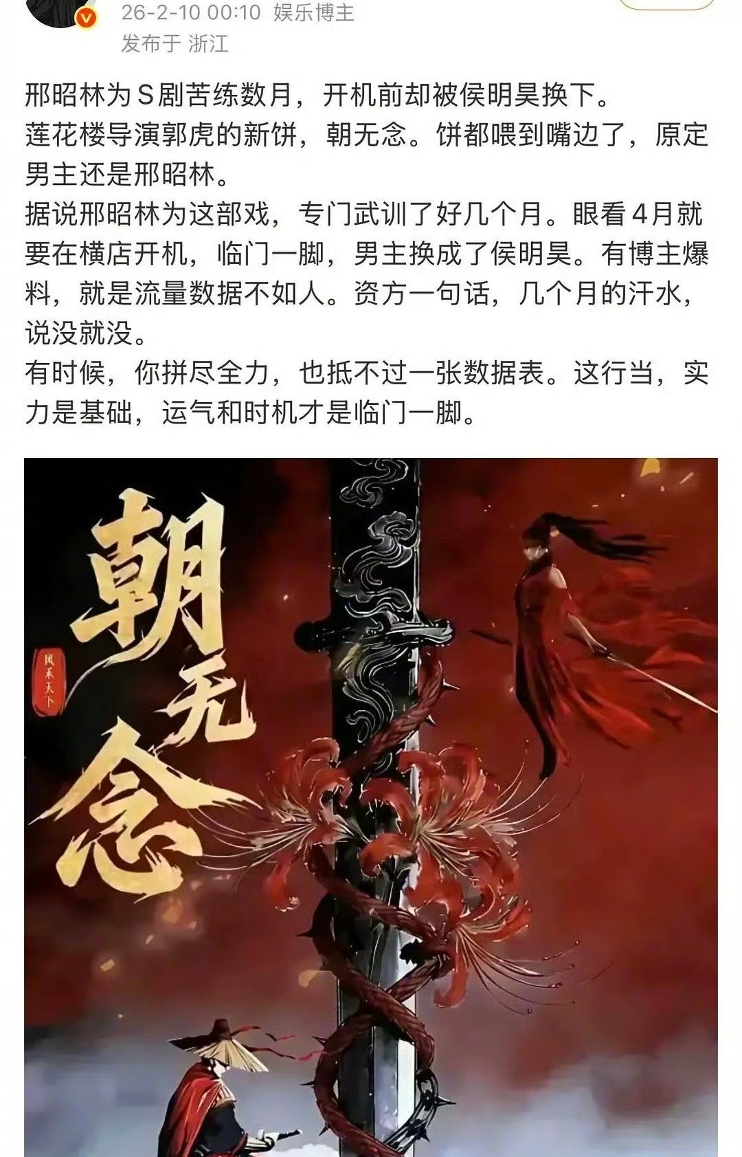 有人说侯明昊把邢昭林给截胡了,是一部《莲花楼》导演主导的S剧。