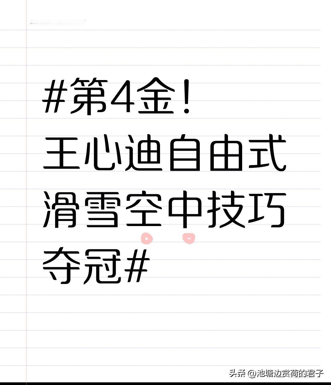 第4金!王心迪自由式滑雪空中技巧夺冠 哇塞,王心迪在自由式滑雪空中技巧项目拿下第4金啦!这含金量可太足了!自由式滑雪空中技巧那难度系数超高,选手要在高速滑行中起跳,完成一系列高难度空中动作再精准落地。王心迪在赛场上那是英姿飒爽,每一个翻转、每一次伸展都恰到好处。他背后肯定付出了无数的汗水和努力,无数次摔倒又爬起,才有了赛场上的完美表现。这枚金牌实至名归,他就是咱们的骄傲,为他欢呼,期待他未来带来更多惊喜!