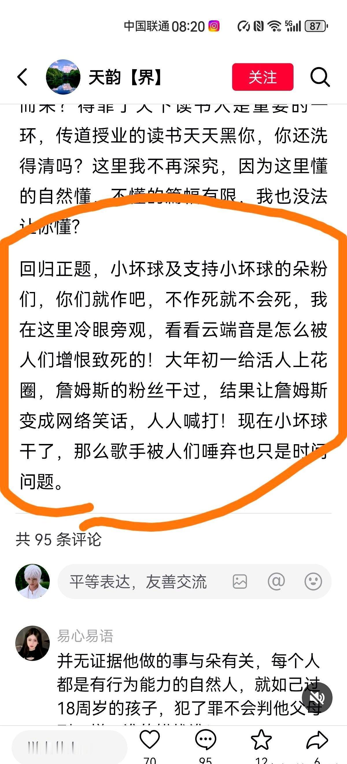 追了云朵十年,我退出了她的51个粉丝群。背后一件事,让我至今脊背发凉。 以前,我跟你们一样,觉得外面那些人就是想搞垮她。天天冲锋陷阵,在评论区跟人吵得脸红脖子粗,就为了护着云朵。 可后来我才看明白,真正的堡垒是从内部塌的。当他们理直气壮喊出“我们五十一个群怎么了”的时候,我突然懂了,路人缘就是这么被一步步败光的。 现在我谁也不帮,就冷冷地看着。外面的人最多是推了一把,真正给她挖坑、埋土的,恰恰是身边最亲近的那些人。 真正击垮一个人的,从来不是外面的枪林弹雨,而是自己人递过来的那一把刀。