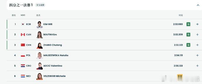 米兰冬奥会短道速滑女子1500米1/4决赛,张楚桐小组第三顺利晋级半决赛。