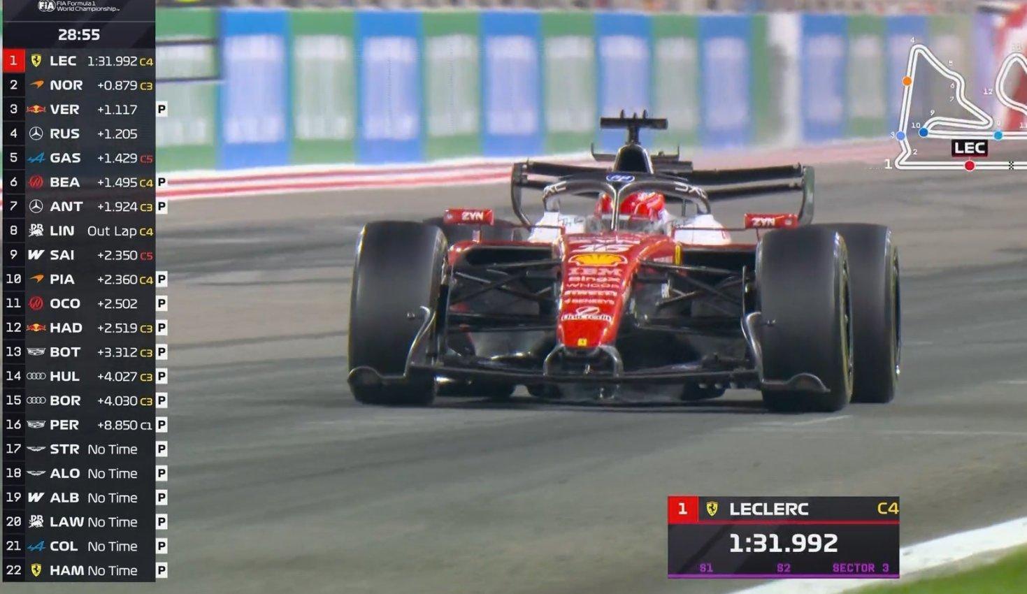 勒克莱尔(法拉利)又一次刷新F1巴林季前测试全场最快单圈:1:31.992F1赛