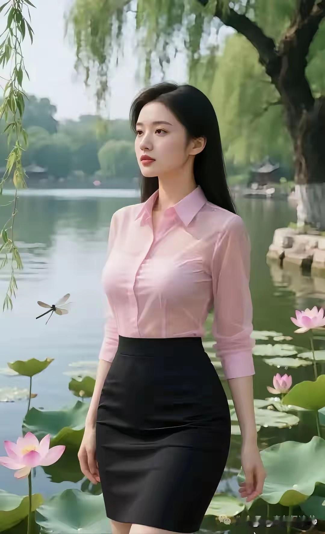 《荷塘趣事》 美女立在池边瞧, 香风一吹魂儿飘。 蜻蜓低飞雨要到, 佳人等人心发焦。 眼看荷塘要变潮, 水波阵阵鱼撒娇。 雨还没来心烦躁, 盼着那人快回巢。
