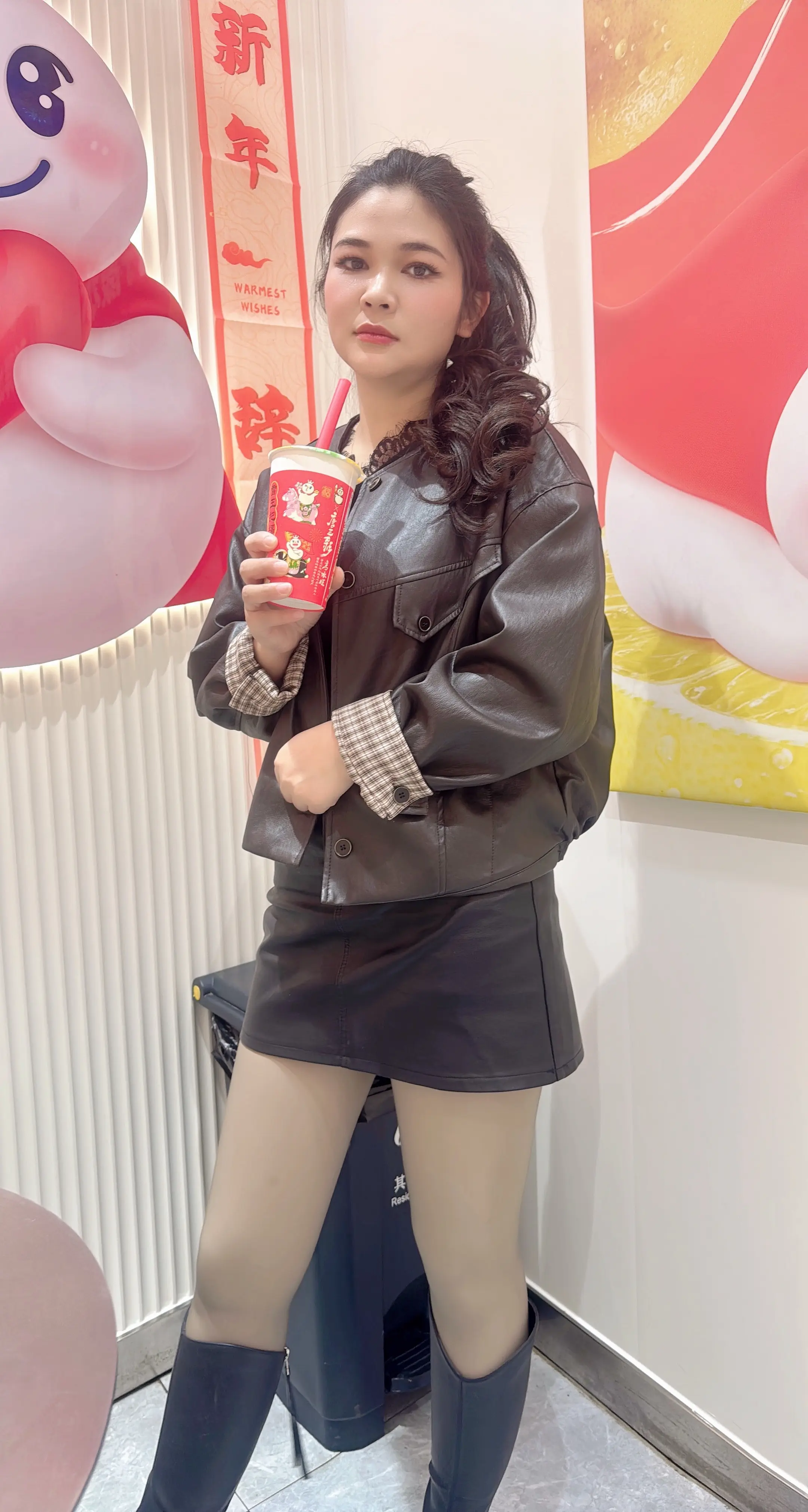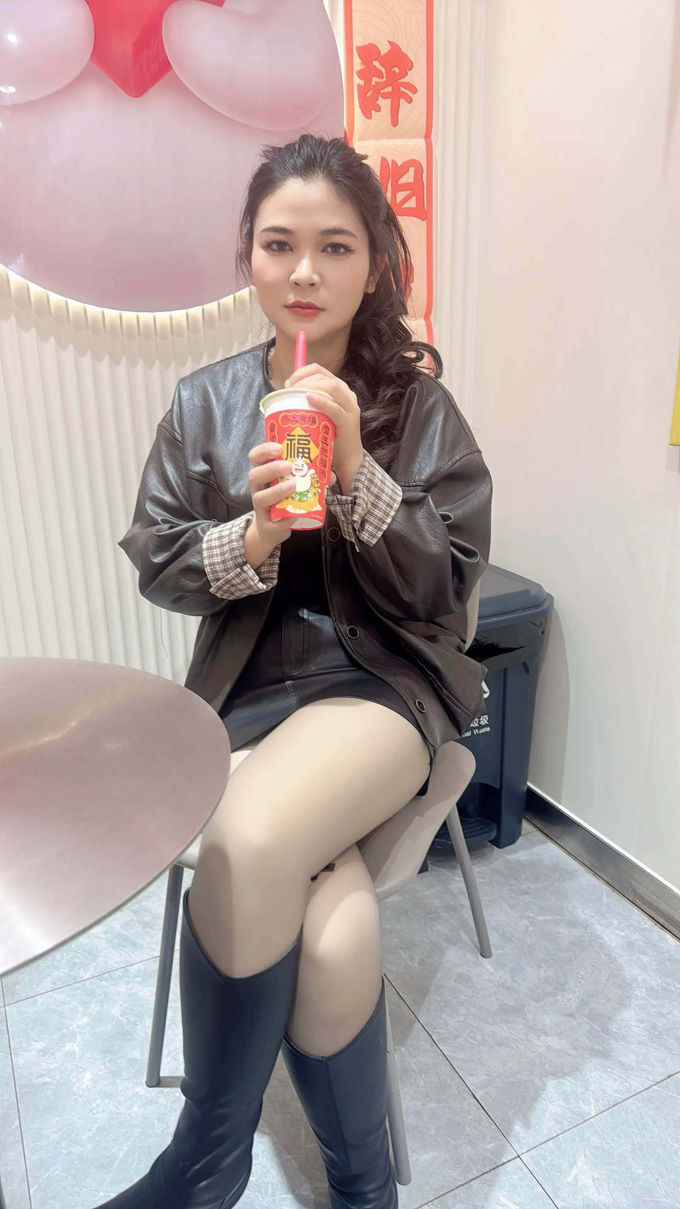大衣穿搭 奶茶店