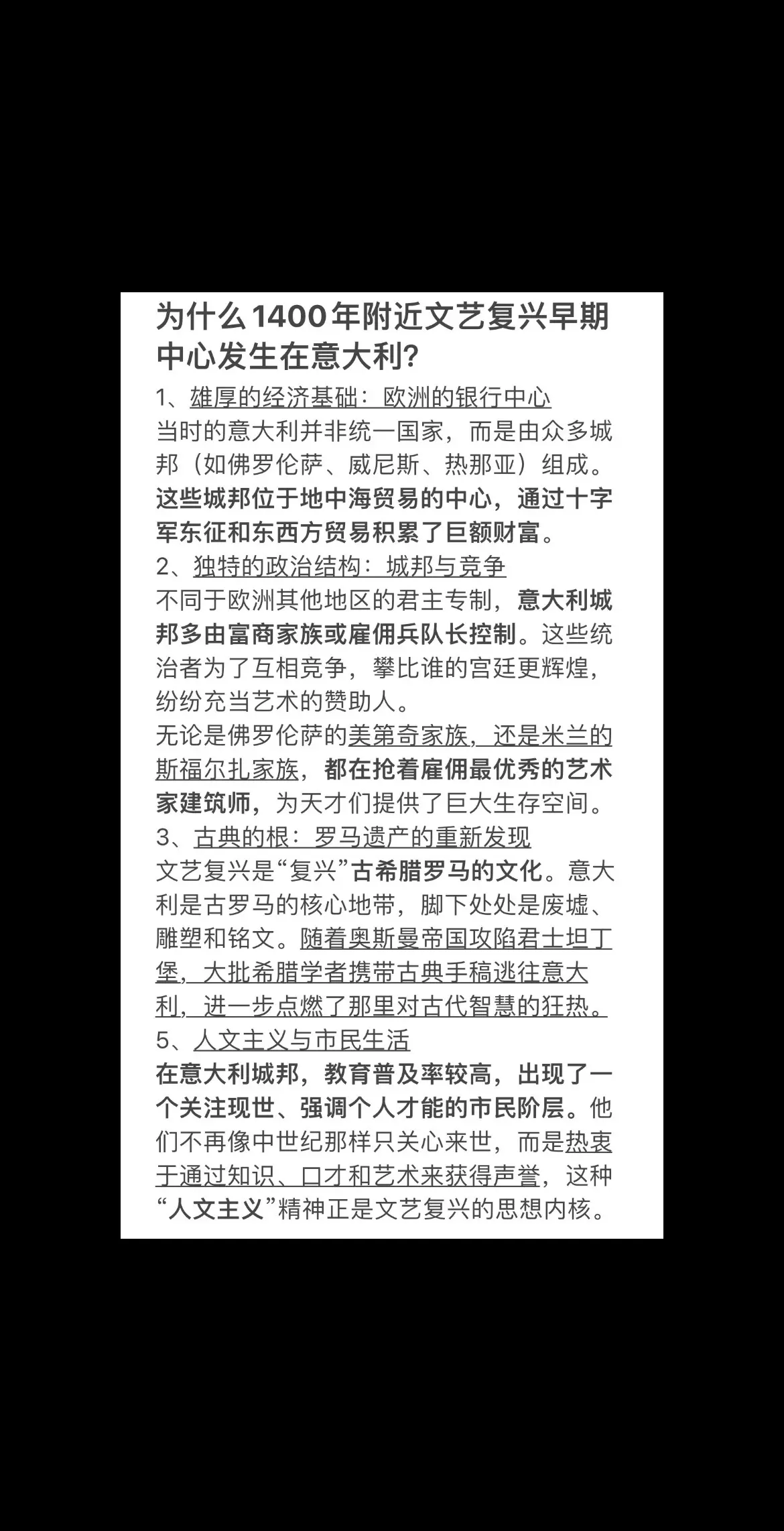 为什么1400年附近文艺复兴早期中心发生在意大利?