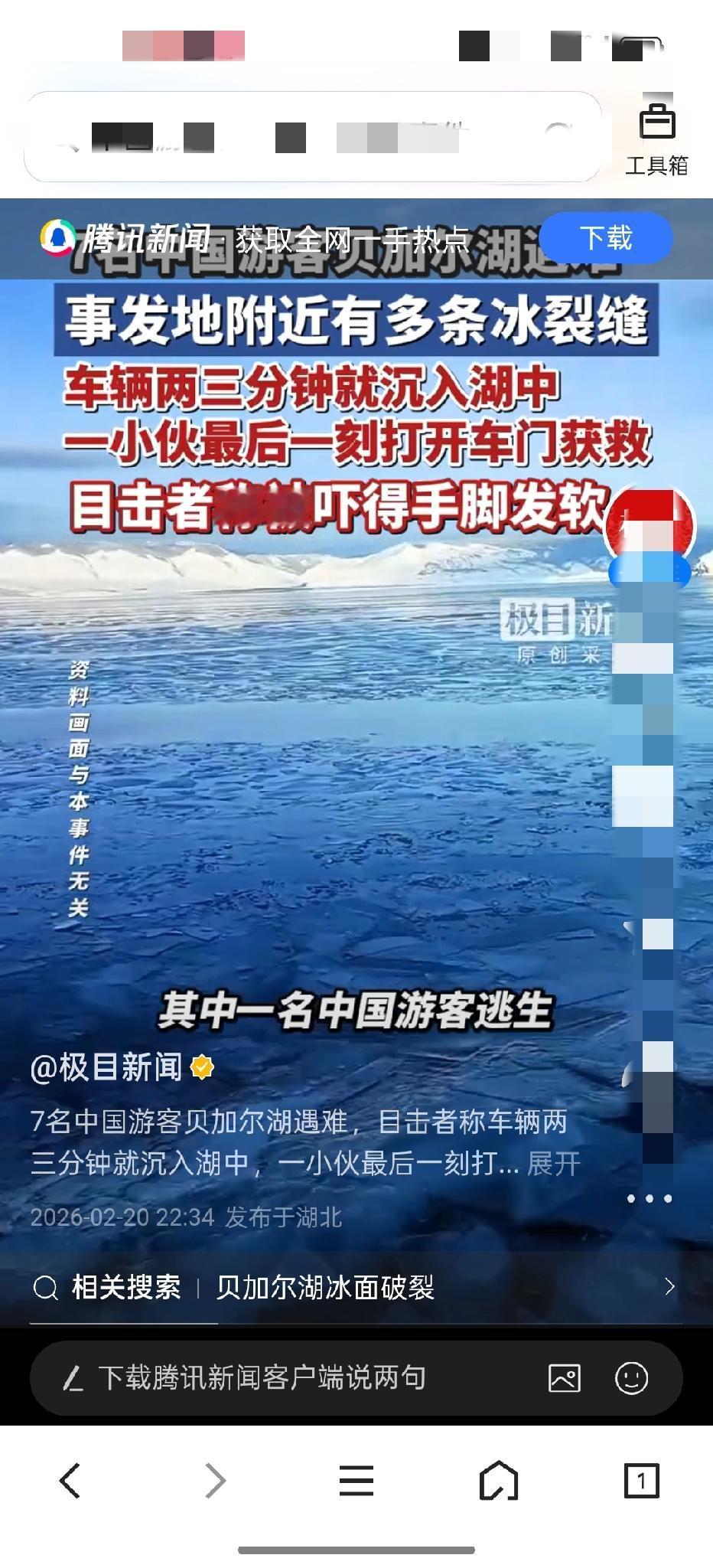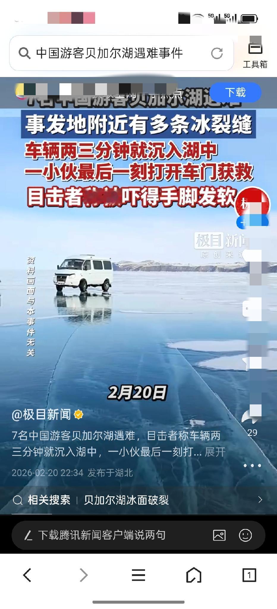 大过年的,非要出国游,就不能好好在国内待着? 20号的时候,有8位中国游客乘车在贝加尔湖上游玩,因为突然坠入冰窟窿,酿成7人溺亡的惨剧。事后查明,该车司机和旅行社没有正规资质,属于野社和野司机。游客何其无辜,把生命交托给这些人,造成如此后果。 冰面行车在咱们国内有严格规定,有安全隐患时整改的也比较及时,而在老毛子那里,那就是说不准的事。因为一个月前贝加尔湖冰面上也发生过一起事故,造成一名中国游客死亡,而当地却可以继续进行冰面行车的活动,真是不可思议。 话说它们当地就没有什么预防措施吗?