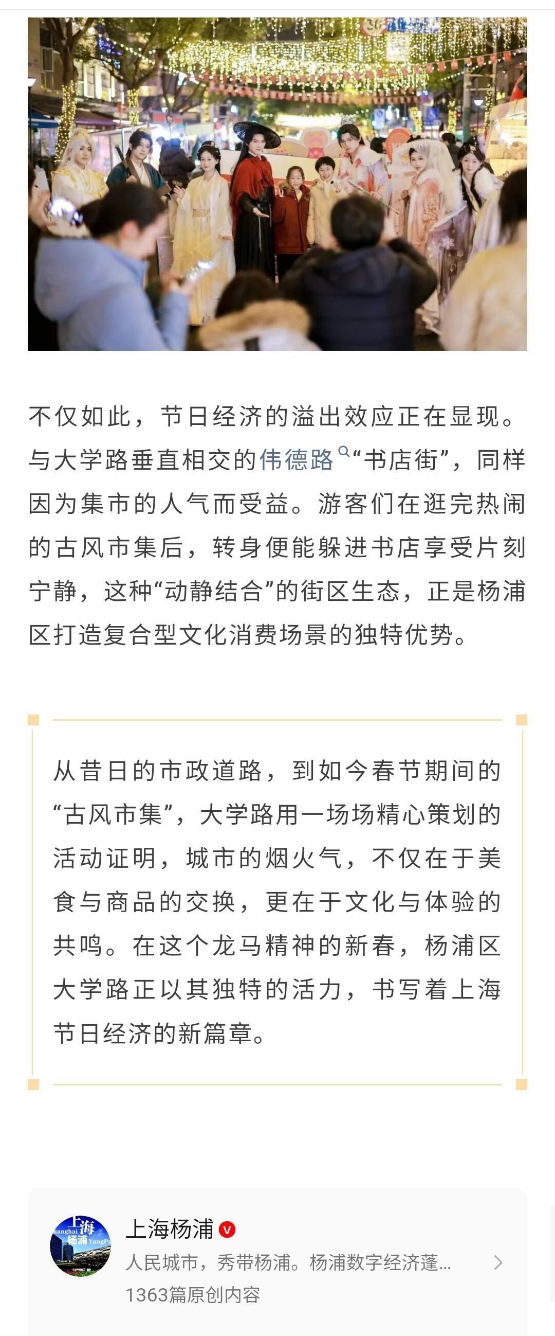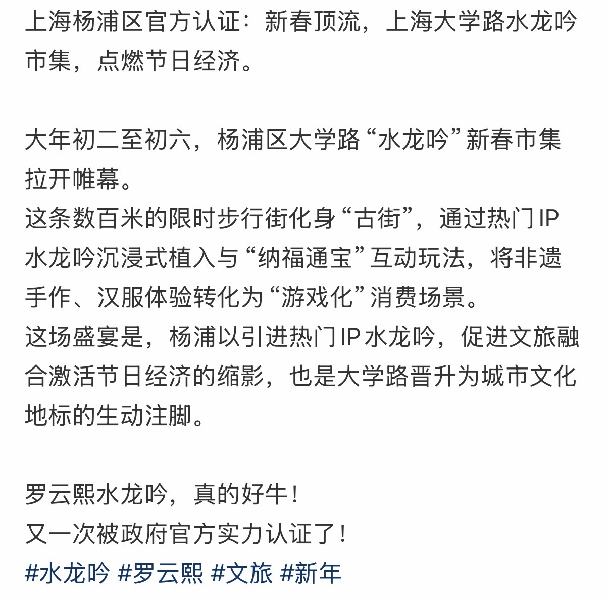 上海杨浦区官方认证:新春顶流,上海大学路水龙吟市集,点燃节日经济。罗云熙水龙吟真的牛!