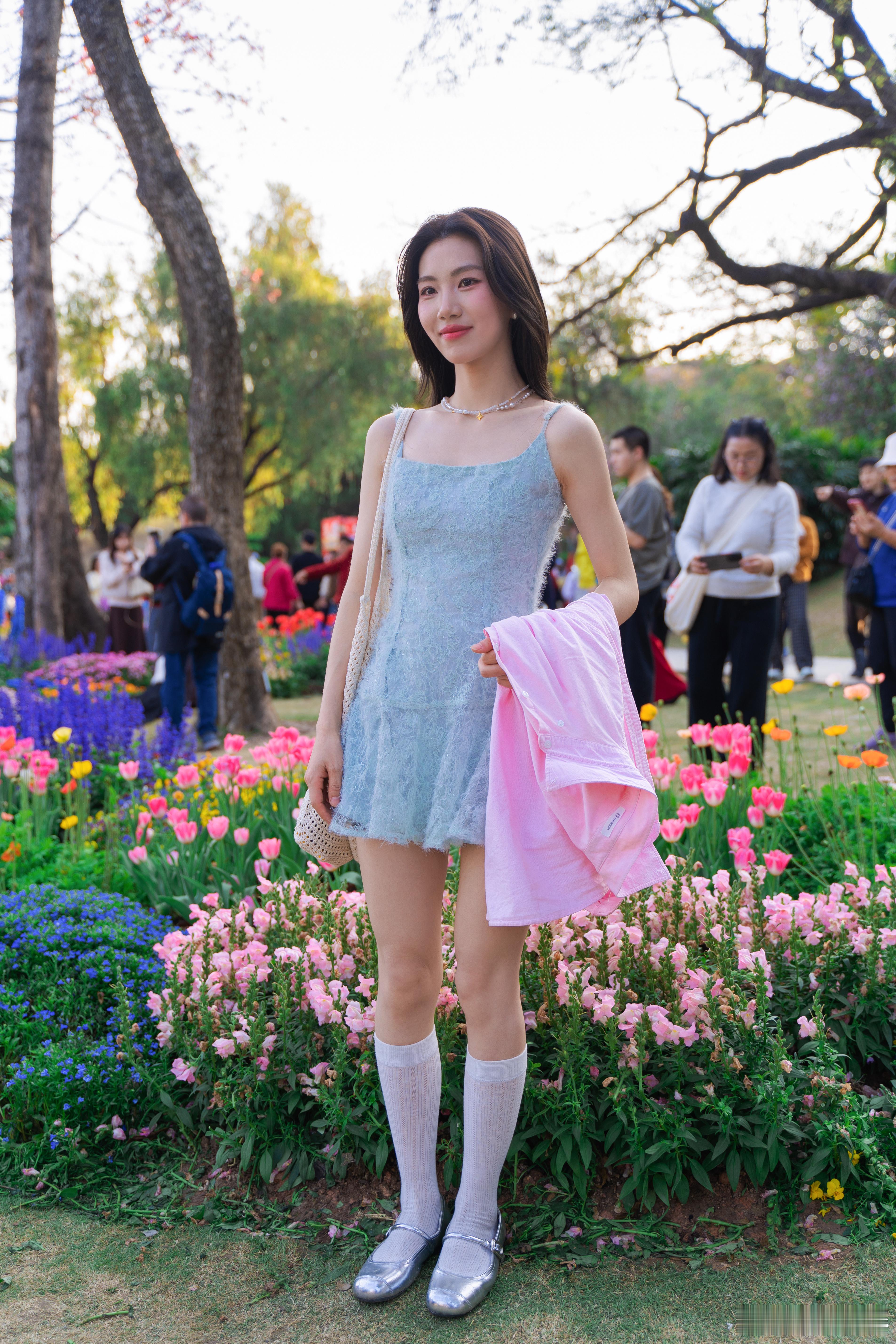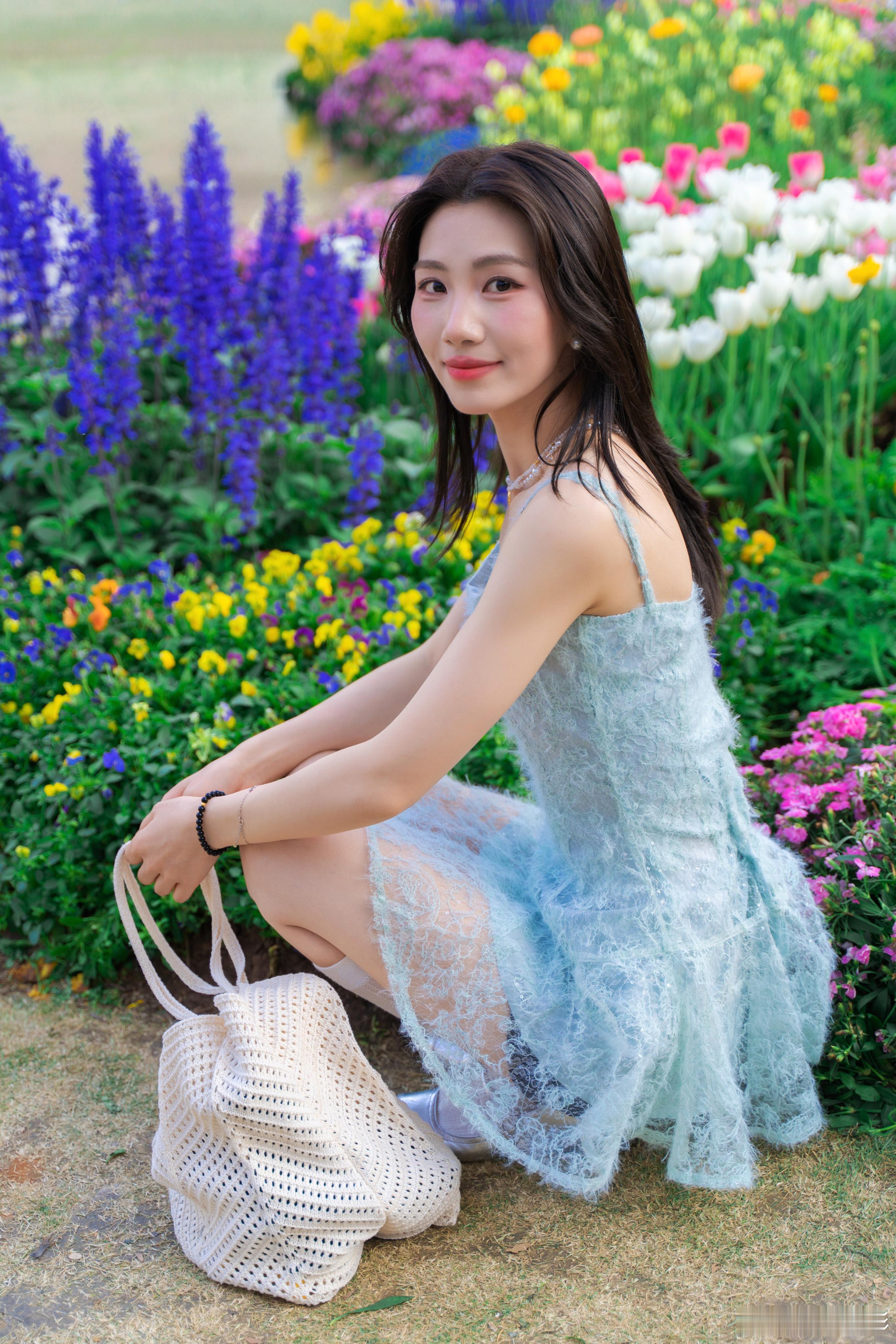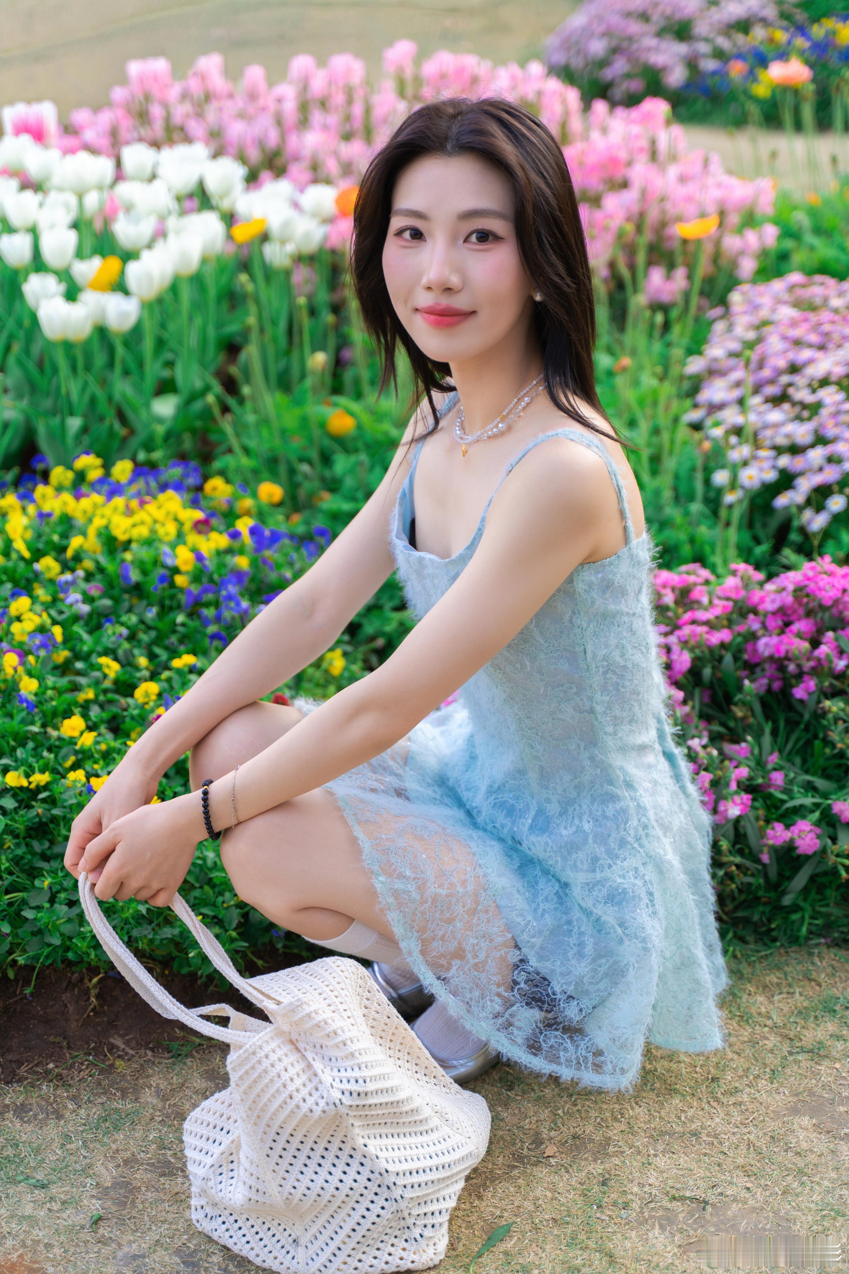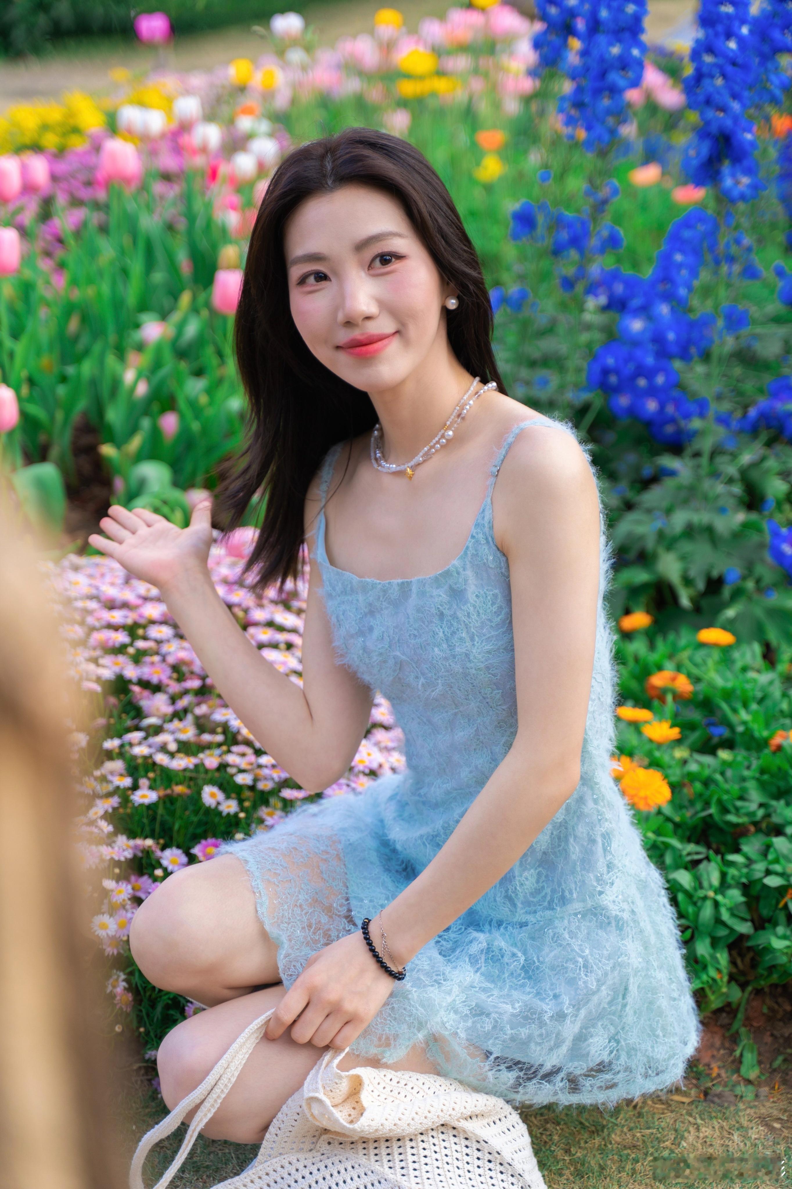 浅蓝吊带裙+满屏郁金香&鲁冰花,每一帧都是心动理由! 微风、阳光、笑意,还有偷偷藏进镜头的粉色外套~ 这个春天,和花一起绽放吧!