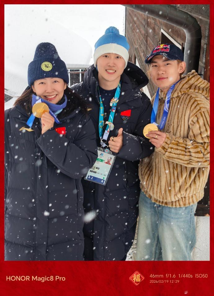 发文庆祝夺冠🏆,并晒出双金夫妇与中国队首金的合照:“其实我和小鸣早已料到昨天拍的,你就说厉不厉害?”