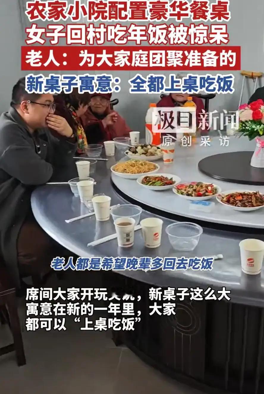 新农村的年味! 大年初二清晨,天刚蒙蒙亮,湖北武汉的张女士就带着丈夫和两个孩子收拾停当,准备驱车前往乡下探望年近八旬的叔公。临行前,她心里其实有些犹豫——不是不想去,而是担心去了反而给老人家添麻烦。毕竟,农村条件有限,老人独居多年,屋舍老旧,厨房简陋,吃饭怕是只能将就。她甚至盘算好了:礼数带到,人露个面,陪老人说几句话,坐上半小时就返程,别让老人忙前忙后张罗饭菜。 可车子刚拐进村口,熟悉的土路竟已铺上了平整的水泥,两旁还装了太阳能路灯;再往里走,家家户户门前都贴着崭新的春联,红彤彤的灯笼在晨风中轻轻摇晃,透着一股子喜气。张女士心头一暖,但真正让她愣在门口的,是推开那扇熟悉木门后映入眼帘的一幕。 堂屋正中央,赫然摆着一张锃亮的电动大圆桌,桌面是厚实的钢化玻璃,光洁如镜,连她孩子的倒影都清晰可见。转盘缓缓转动,发出轻微而平稳的嗡鸣声,整张桌子稳稳当当,足足能围坐十五六人。若不是墙上还挂着那本泛黄的老日历,灶台边依旧贴着褪色的“福”字年画,她几乎要以为自己误入了城里某家高档酒楼的包间。 这变化实在太大了。去年春节,她还记得清清楚楚:那张老旧的方木桌腿都有些歪斜,桌面斑驳掉漆,四个人围坐都显得局促,筷子伸出去总得绕着弯儿,生怕碰翻了碗碟。孩子们只能端着小板凳坐在角落,老人则站在一旁,一边夹菜一边念叨:“你们吃,我站着就行。”那顿饭吃得热闹却也心酸。 而今年,一切都不同了。叔公听见车声,早已站在院门口张望。见到他们一家下车,他脸上的皱纹瞬间舒展开来,笑得眼睛眯成一条缝,快步迎上来,一边拍着孙子的肩膀,一边拉着张女士的手往屋里引:“快进来坐!快进来坐!新桌子,专门给你们换的!” 他像个得了宝贝的孩子,迫不及待地展示起这张“新宠”。他轻轻按动桌沿的小按钮,转盘便顺滑地旋转起来。“你看,想吃哪道菜,转一下就到跟前了,不用站起来够,也不用喊人递。”他语气里满是得意,又带着几分小心翼翼的期待,仿佛在问:“你们喜欢吗?” 饭桌上,热气腾腾的腊肉炖藕、清蒸武昌鱼、手工炸丸子……一道道家乡菜香气四溢。孩子们围坐一圈,叽叽喳喳讲着学校里的趣事,丈夫和叔公聊着村里新修的灌溉渠和合作社的分红。张女士夹了一块软糯的藕片放进嘴里,忽然听见叔公轻声说了一句:“换这张大桌子啊,就是想着,以后大家都能上桌吃饭,一个都不落下。” 这句话像一根细针,轻轻扎进了她的心底。她鼻子一酸,差点没忍住眼泪。 “上桌吃饭”——这四个字听起来再平常不过,可在农村老一辈人心里,却承载着沉甸甸的情感。过去,家里桌子小,每逢年节亲戚多,总有人得端着碗蹲在门槛上吃,或者等前一拨人吃完才轮到自己。老人从不抱怨,可每次看到孙辈们站着扒饭,眼神里总有一丝难以察觉的落寞。他不说,但心里明白:团圆,不该有“下一拨”。 如今,这张电动圆桌不仅解决了“坐不下”的难题,更是一种无声的宣告:无论你从多远回来,无论你是谁家的孩子,今天,你都有位置,你都是这个家不可或缺的一份子。一家人整整齐齐围坐一圈,碗筷相碰,笑语喧哗,这才是年该有的样子。 饭后,张女士帮着收拾碗筷,走到厨房才发现,连灶台都焕然一新——燃气灶取代了柴火灶,抽油烟机安静运转,水龙头一拧就是热水。叔公站在院中晒太阳,手里捧着一杯热茶,望着远处田野里返青的麦苗,悠悠地说:“现在日子好了,路修通了,网也通了,快递都能送到村口。可再好的日子,要是没人回来吃顿饭,那也冷清。” 这话让张女士久久不能平静。她忽然意识到,所谓“新农村”,不只是水泥路、小洋楼、5G信号,更是人心的回归与亲情的重聚。科技可以改变生活条件,但唯有那份“围坐一桌、共话家常”的温暖,才是年味最深的根。 回城的路上,孩子在后座睡着了,丈夫开着车,收音机里放着《常回家看看》。张女士望着窗外飞驰而过的田野,心里默默做了一个决定:以后,不只是过年,清明、端午、中秋……都要带孩子回来。因为对老人而言,最金贵的从来不是山珍海味,也不是高楼广厦,而是一张能坐下全家人的桌子,一顿热腾腾的团圆饭,和儿孙绕膝时那一声声“爷爷”“奶奶”的呼唤。 新农村的年味,不在烟花有多绚烂,不在红包有多厚实,而在那张圆桌旁,每个人都有自己的位置,每颗心都被温柔安放。这,才是中国乡村最动人的年。老家春节氛围 年味的回忆