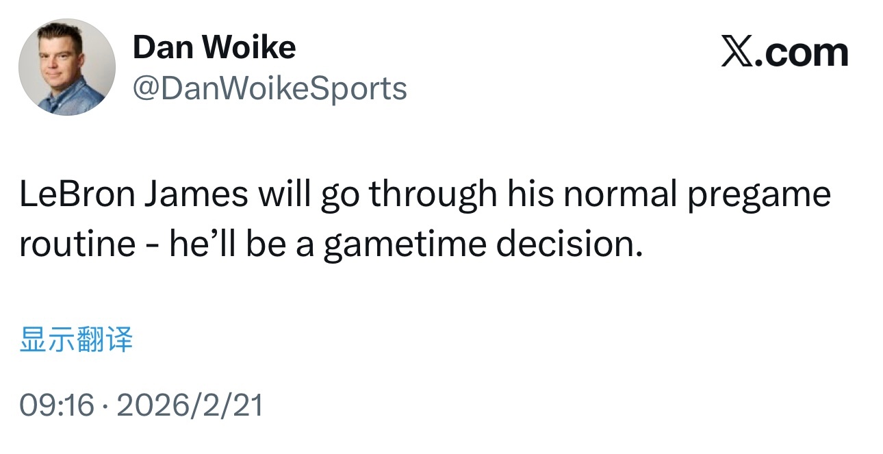 詹姆斯将按照惯例进行赛前准备,是否出战赛前决定!