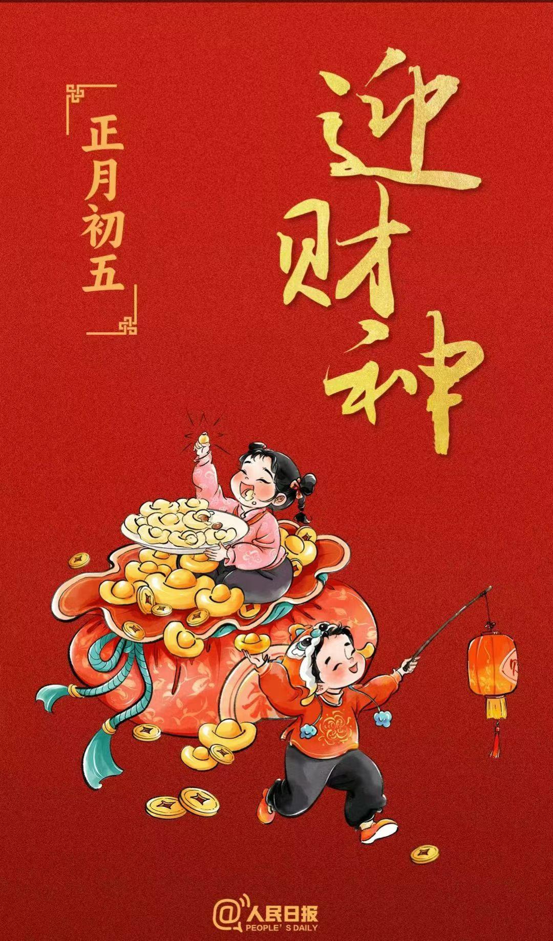 正月初五迎财神。