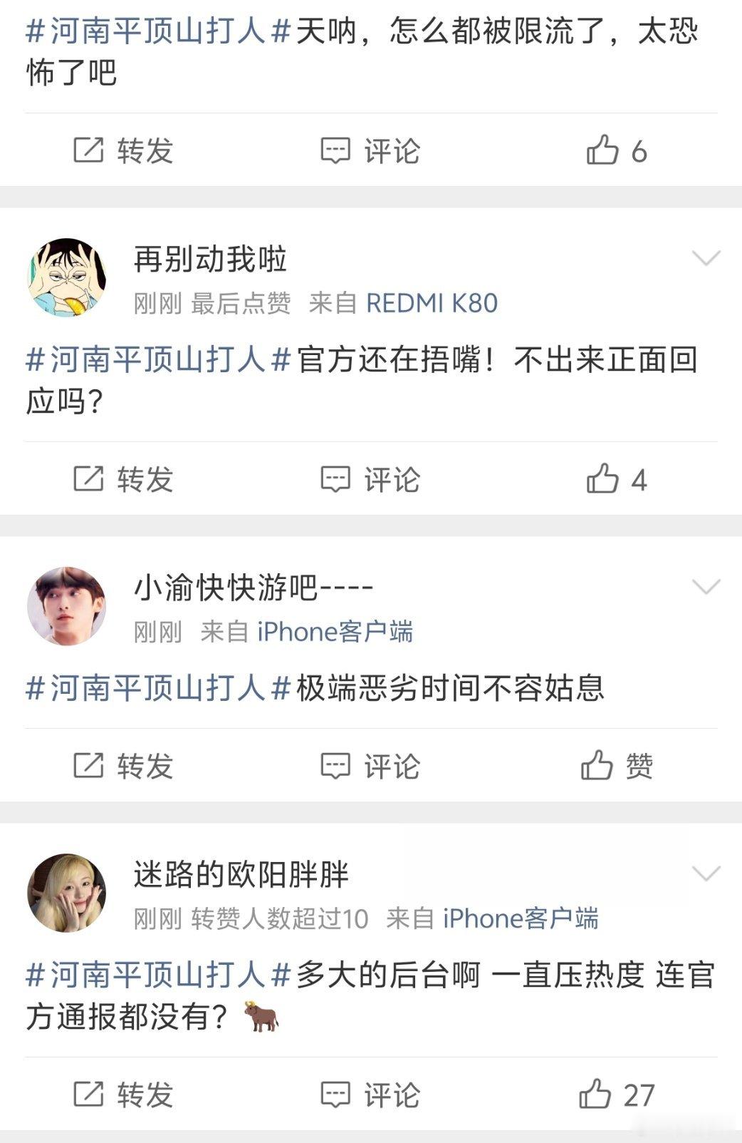 河南平顶山打人 我发现这些人一旦看到什么事情,就会带节奏。说官方捂嘴,没有结果。你以为官方是自媒体,一张图一段话就能成为官方通报吗?官方通报是需要调查之后,然后给到。