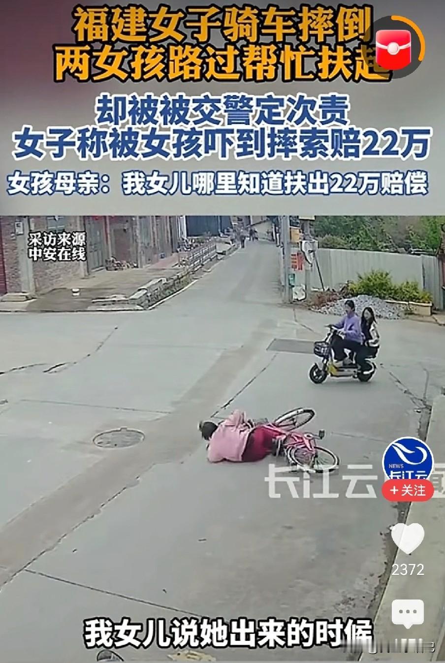 一个骑自行车的,不过是无接触事故摔倒而已,凭什么索赔22万,这女人是金子做的吗? 监控清晰记录了全过程:女孩只是路过的旁观者,扶起摔倒者是纯粹的善意之举,并非事故责任人。摔倒女子自身操作不当是主因,白车的通行影响是直接诱因,与好心搀扶的女孩毫无因果关联。可她却将矛头对准无辜者,漫天要价索赔22万,远超实际医疗费用,这种行为不是维权,而是赤裸裸的讹诈。 无接触事故担责,核心是过错与损害存在直接因果关系,而非只要路过就要负责。女孩的救助行为发生在摔倒之后,既未制造危险,也未引发事故,凭什么要为他人的失误买单? 更令人心寒的是,这份善意换来的不是感激,而是巨额索赔,难怪无数人感慨:如今不是“扶不扶”,而是“不敢扶、不能扶”。 善良不该成为被拿捏的软肋,正义更不能向无理取闹低头。22万索赔索不走法律的公正,却差点浇灭社会的善意。我们期待法律给出公正判决,严惩恶意讹诈行为,希望有正义的律师能帮助这个女孩。 从法律角度看,摔倒女子虚构因果、过度索赔,已背离合理维权范畴。女孩家属完全可以通过法律途径维权,若对方以非法占有为目的,故意捏造事实骗取财物,数额较大则涉嫌诈骗,理应承担相应法律责任才对,大家怎么看这件荒唐的事情? (图片来自网络视频)