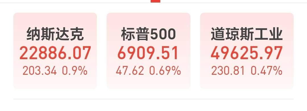 美股市场昨天晚上也是上涨,纳斯达克指数上涨了0.9%,标普指数上涨了0.69%,道琼斯指数上涨了0.47%,上涨的幅度也都不大。