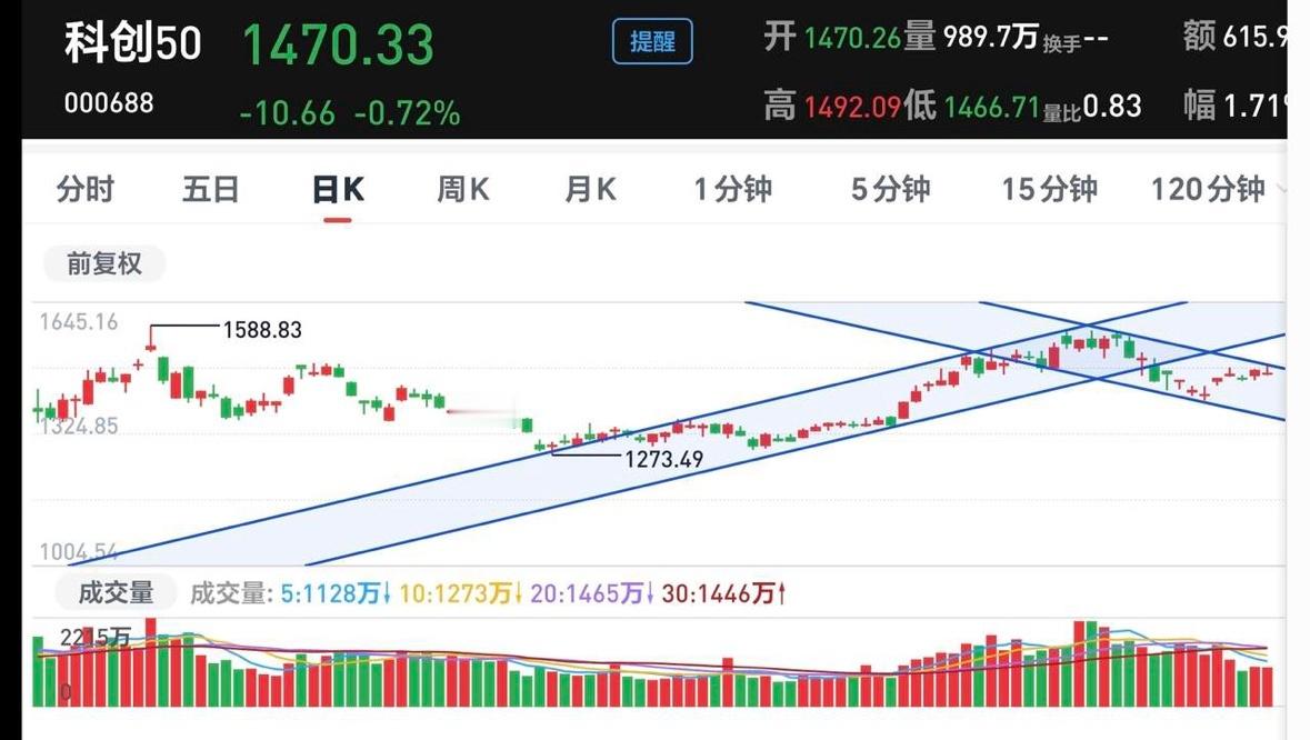 科创50板块周线级别处于上涨通道中,距离上涨通道上下轨线的位置都比较远,暂时的涨跌都影响不了周线级别的上涨趋势,长线持有的人可以继续持有,下跌跌破上涨通道下轨线的时候,长线持有的人需要注意风险。