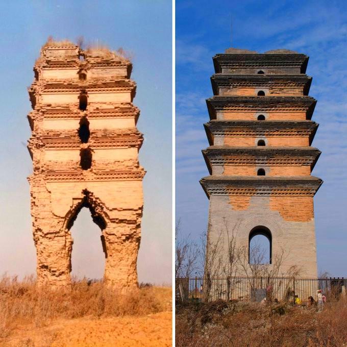 在西安,有一座比大雁塔还要年长20岁的古塔,却低调得让人心疼。它就是二龙塔,藏在长安区王莽街道土门峪的西南山顶上,建于唐贞观六年(公元632年),距今已有1390多年历史。当游人如织地涌向大雁塔时,这座真正的唐代“老前辈”,却独自静立在终南山深处,看尽千年风云。 关于二龙塔,当地流传着一个传奇故事:贞观年间,太宗李世民与太史令李淳风到终南山避暑。李淳风登高远眺,忽见长安方向王气氤氲,掐指一算,竟有“真龙”将出的征兆。他恐危及大唐江山,便奏请太宗在此建塔镇之。于是,这座塔便承载了一个王朝的焦虑与祈愿,成为传说与历史的双重印记。 千年风雨侵蚀,二龙塔曾严重损毁,塔身破败。2005年,文物部门遵循“修旧如旧”的原则进行加固修复,保留了原塔残高,让这座古塔既延续了历史风貌,又恢复了往昔的雄伟肃穆。 说来有趣——若在别的省份,这样一座唐代古塔,定会被当作国宝级地标来宣传。可它在西安,这座遍地是宝的城市里,低调到很多本地人都未曾听闻。它就这么静静地立在山上,守着一方水土,任凭大雁塔的钟声传遍世界,它只与山风为伴。你听说过二龙塔吗?(图片源网)
