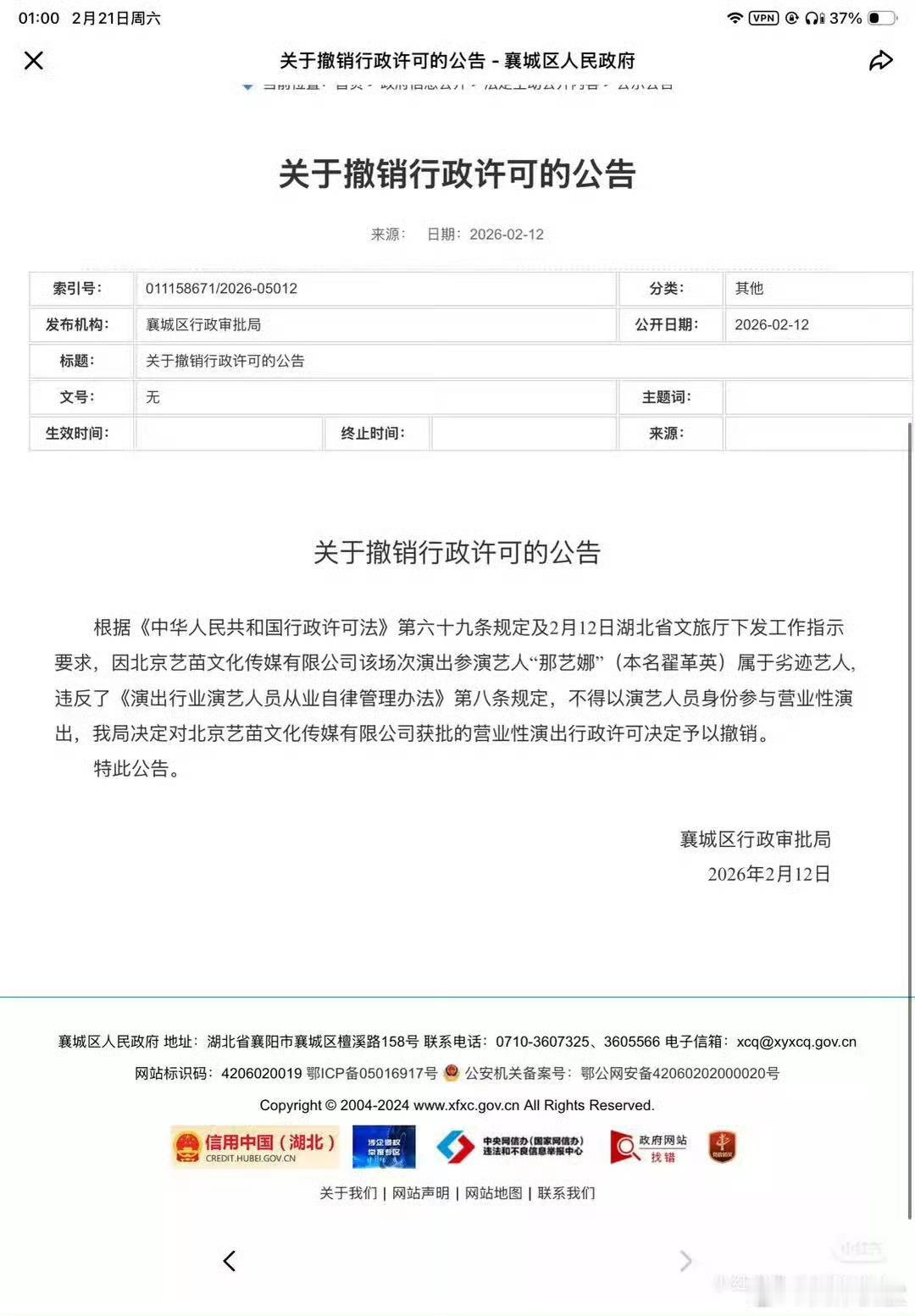 你们去政府网站查一下就知道了那艺娜劣迹艺人