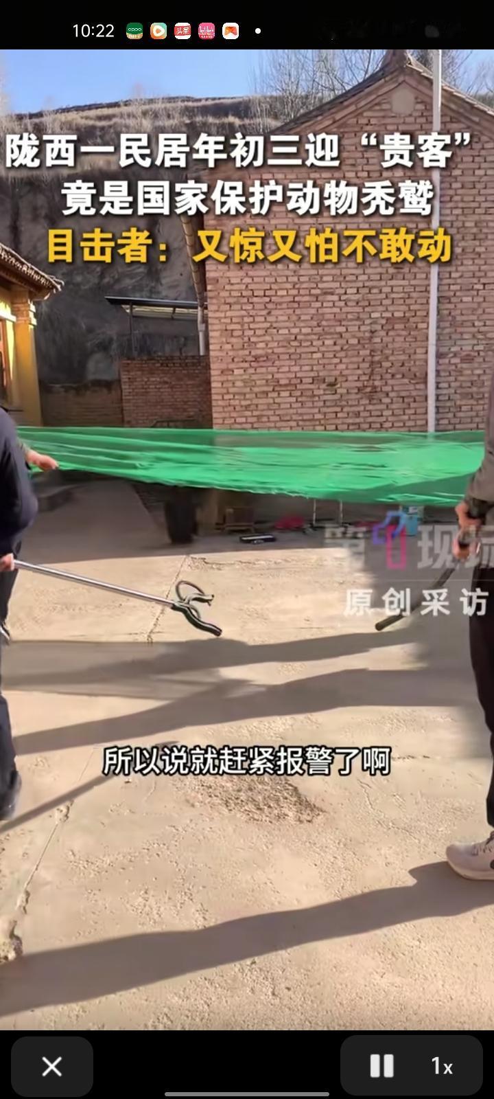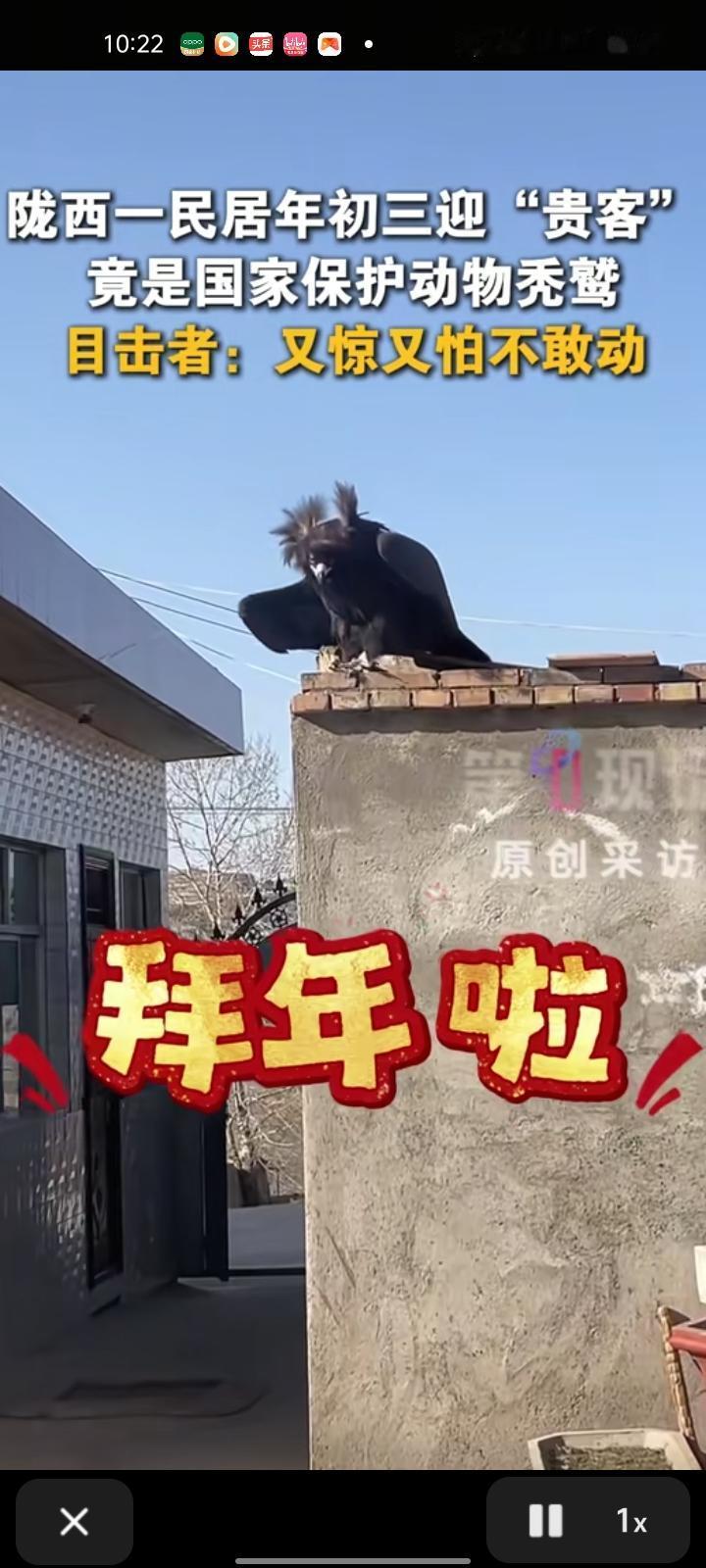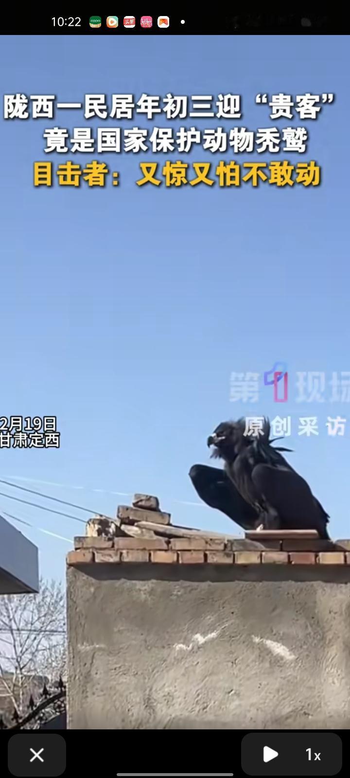 2月16日,定西市陇西县。网友晒视频称,家里来了位“不速之客”,竟是国家一级保护动物秃鹫。家里孩子多,怕伤到孩子就报警了,不能私自抓捕,警察赶到现场后就把它带走了。