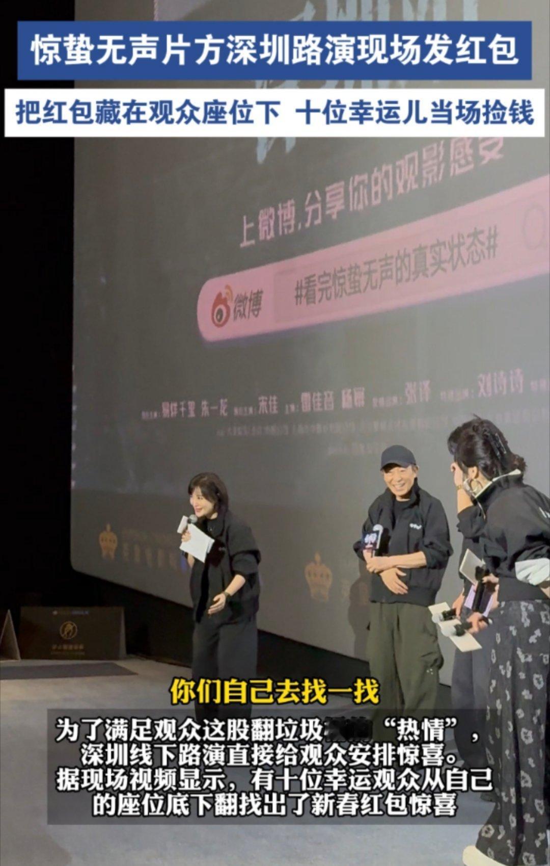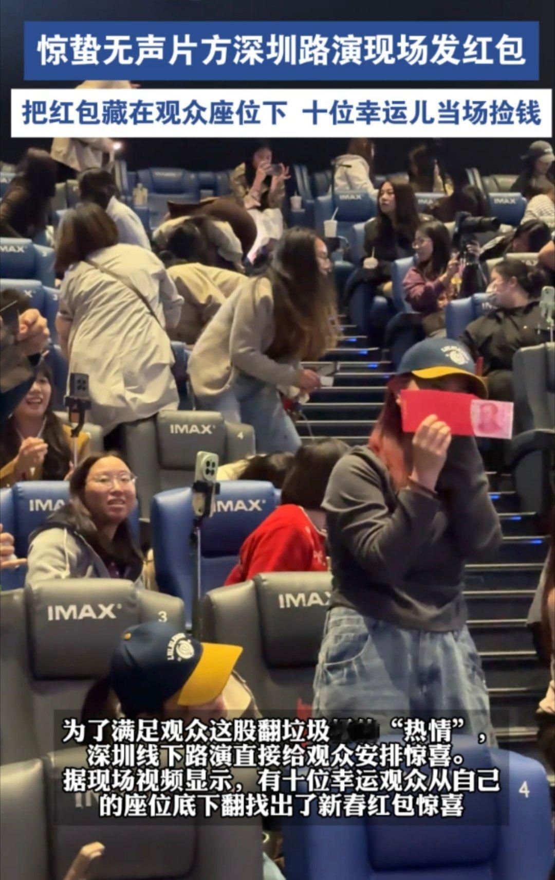 惊蛰无声片方深圳路演现场发红包深圳路演都在捡钱了,财神爷肯定已经到广东了!快开门,我感觉这波财运能顺着网线传给你,大家马年一起暴富!