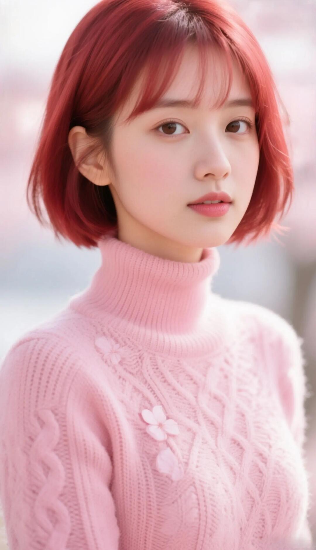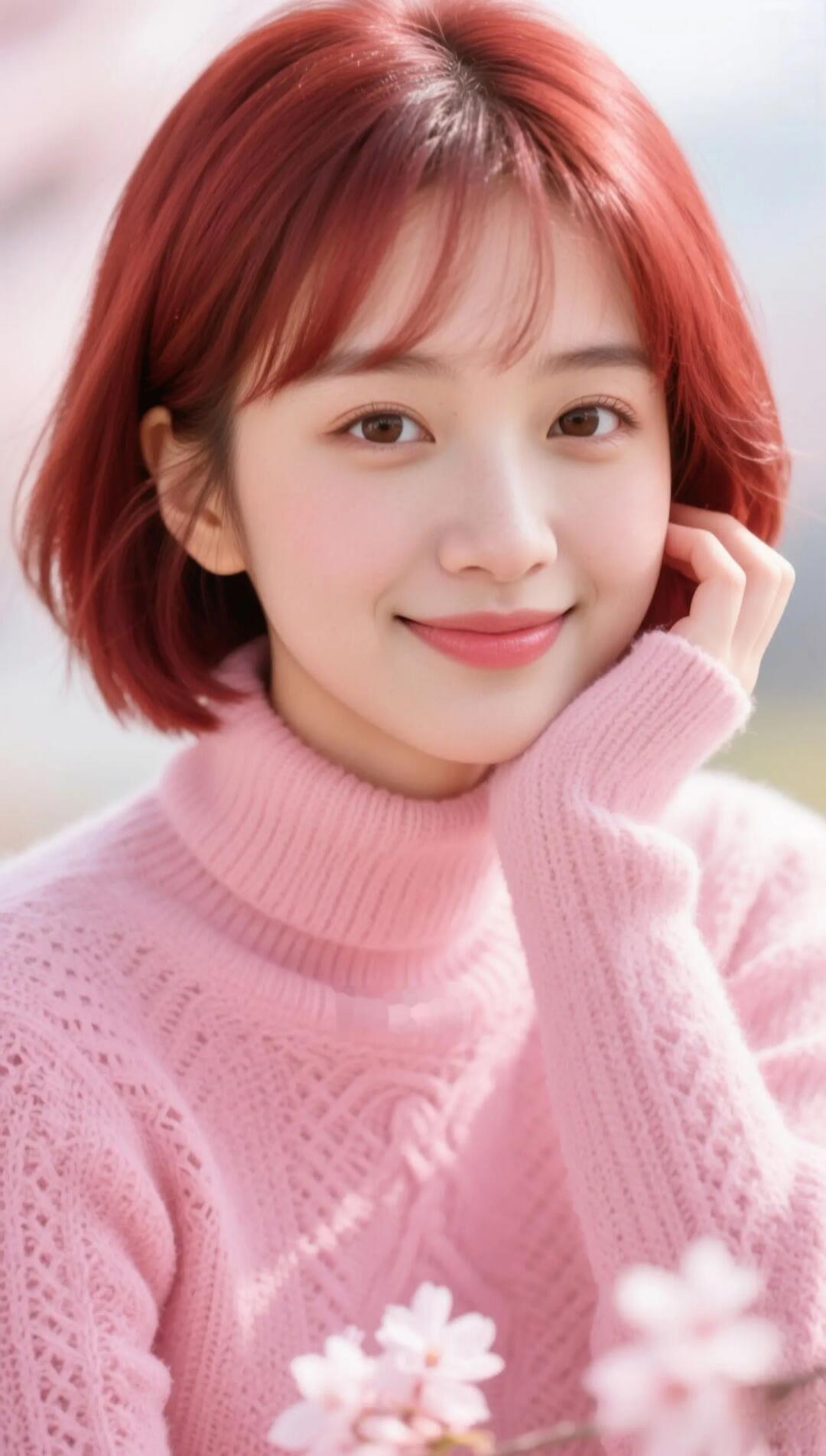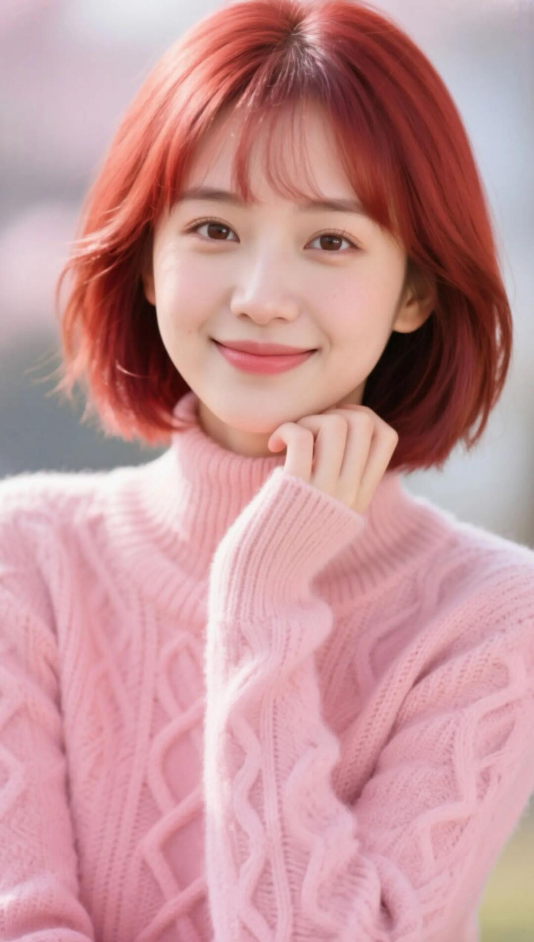 温柔粉毛衣,甜美红发少女,冬日暖阳下,甜美动人